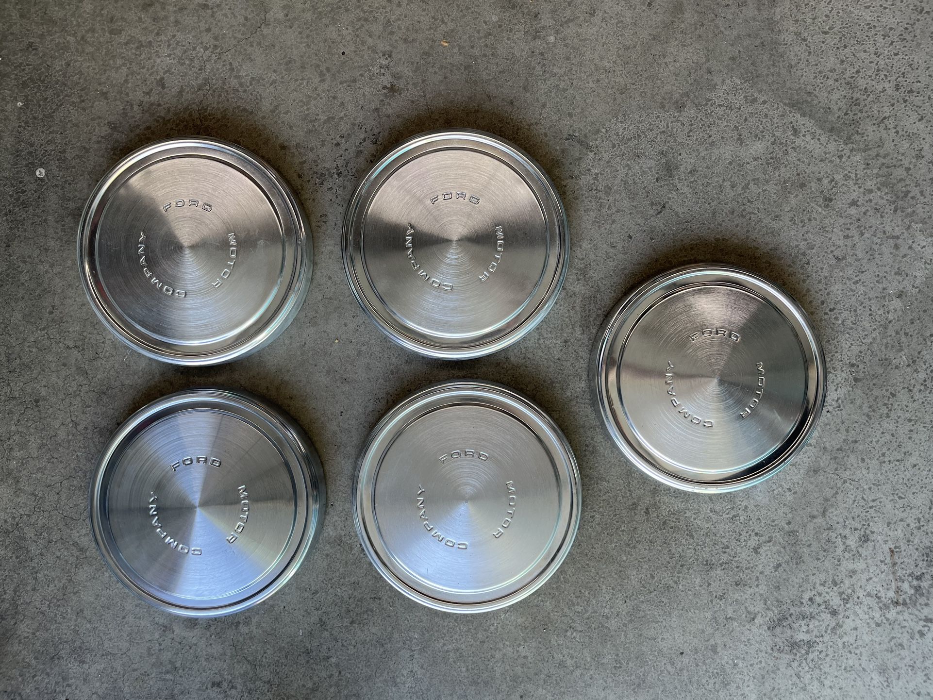Original Ford OEM hubcaps. Set of 5 in good condition. Sold as a set.