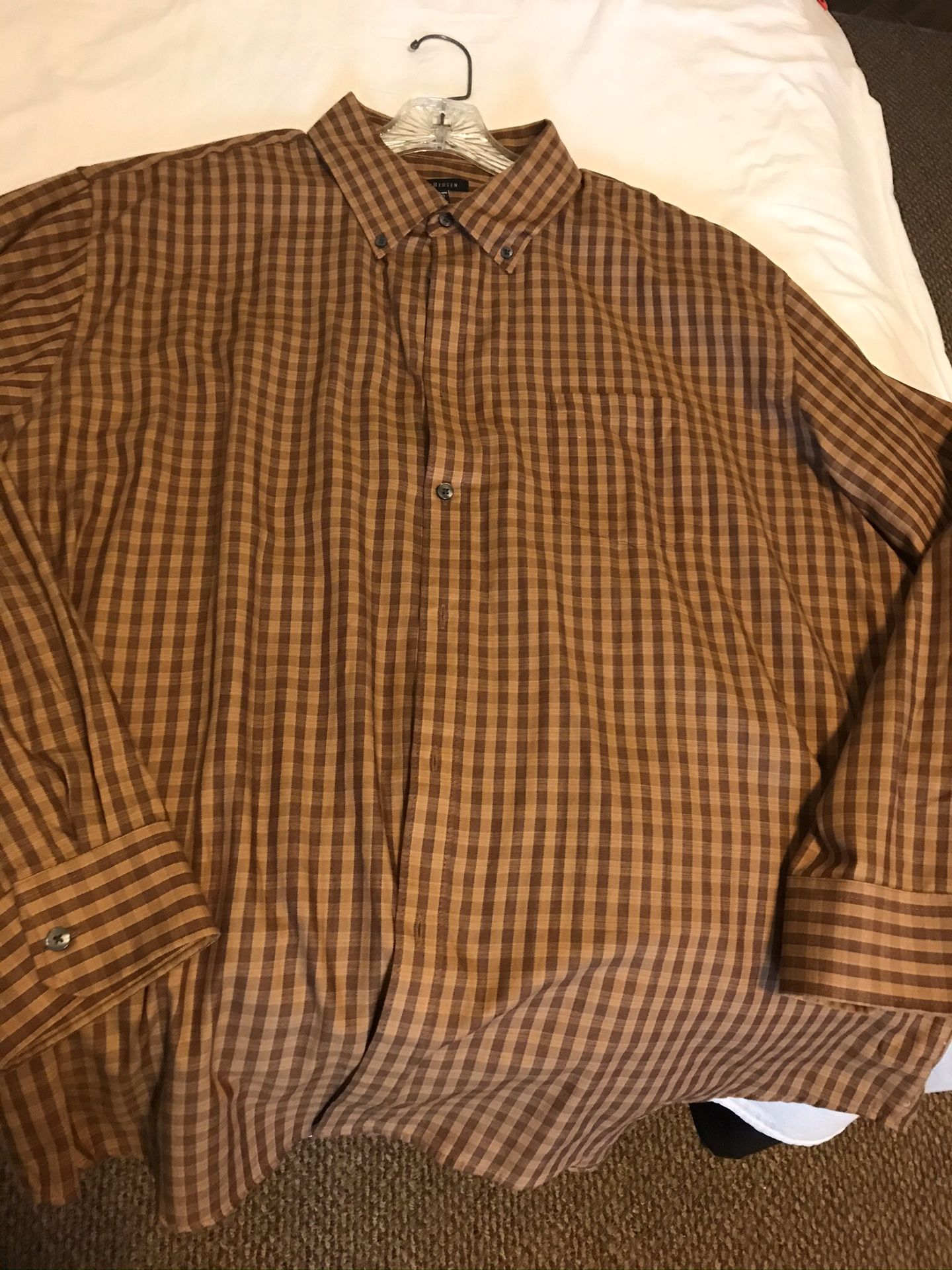 Men’s van heusen brown check plaid shirt 18-18 1/2 XXL