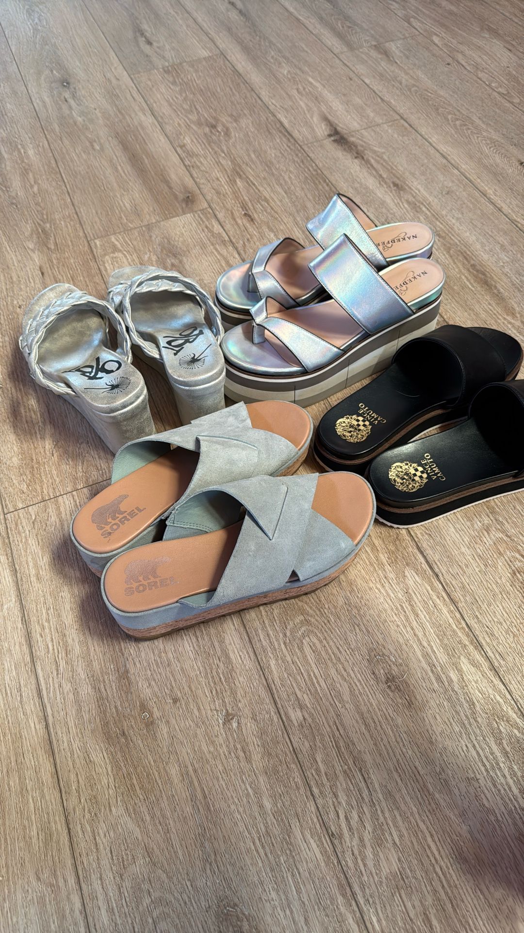 This is a lot of four pairs of shoes. These are sold together we will not break them up. These are either not worn or they are worn once or twice. From the depths of the closet to your closet feel free to make an offer and come grab them. We are nearby the 101 and cactus in Scottsdale. We do not have cash app or Zelle or Venmo. We can only accept a hard paper cash. Or gold bullion.