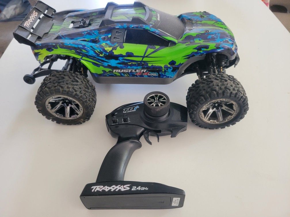 Rustler 4x4 vxl in great condition. Upgraded shocks springs RPM adapter to fit Traxxas Wheelie bar. Pick up in LA 90016
