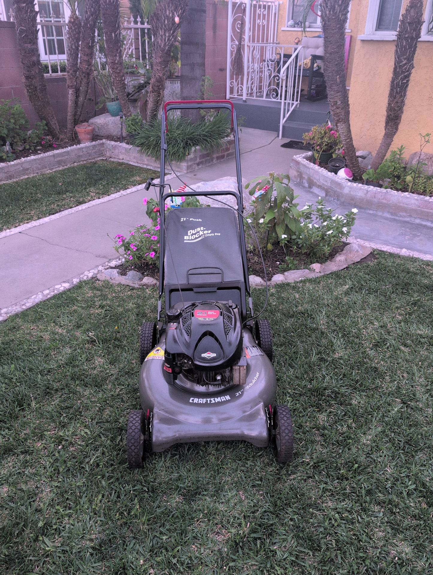 Craftsman 190 cc 6.75 HP by Briggs and Stratton 21 inch cut in excellent condition It starts on first pull Clean carburetor Clean air filter Sharp blade Excellent bag Ready to cut grass
