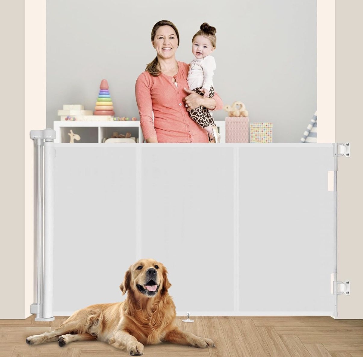 71 inch Retractable Baby Gates 42 inch Tall, Retractable Gate with Reinforced Strip Design to Prevent Crawling Through, 6 FT Retractable Dog Gate for Stairs, Doorways, Hallways, Indoor/Outdoor. L-4008