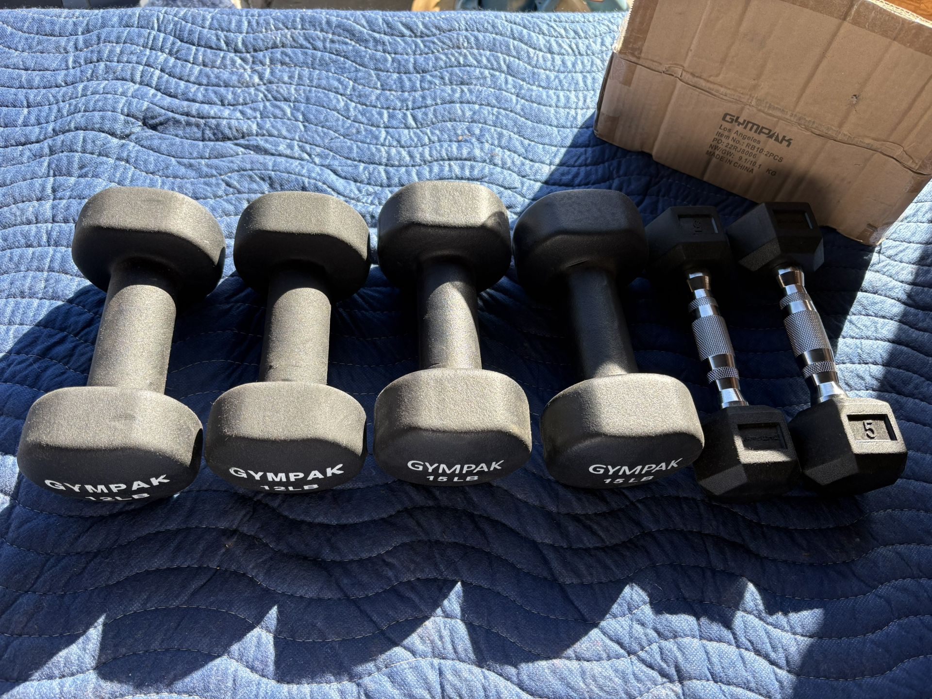 New Gympak Dumbbells Multiple Weights Available Set of 5lb- $20 Set of 10lb-$40 Set of 12lb- $46 Set of 15lb-$50 Exercise Equipment Service and Repair of Southern California