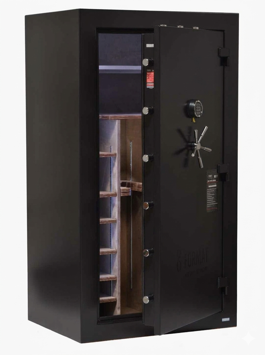 Experience ultimate security with this massive, professional-grade commercial/ residential safe. Offering a colossal 50 cubic feet of internal storage, it provides ample, centralized space for your entire collection of firearms and valuables. Both the safe and its advanced locking mechanism are UL listed for verified protection.