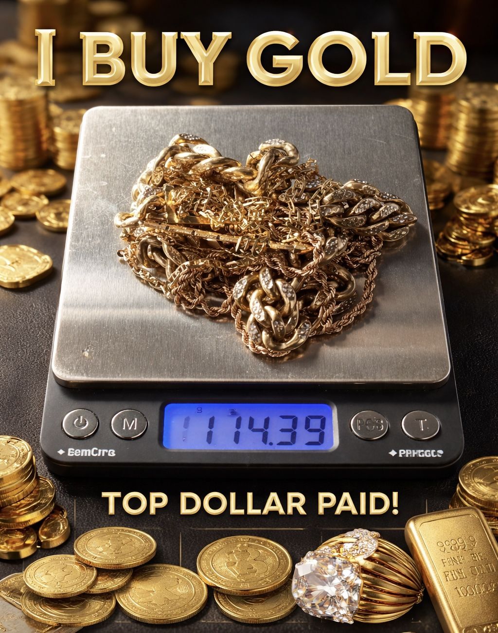 I buy gold in any condition. Can meet in public locations and local police stations Feel free to message if you have any questions Compro oro en cual querier condición. Nos podemos reunir en un sitio público. Me puede mandar mensaje sin ningún compromiso.