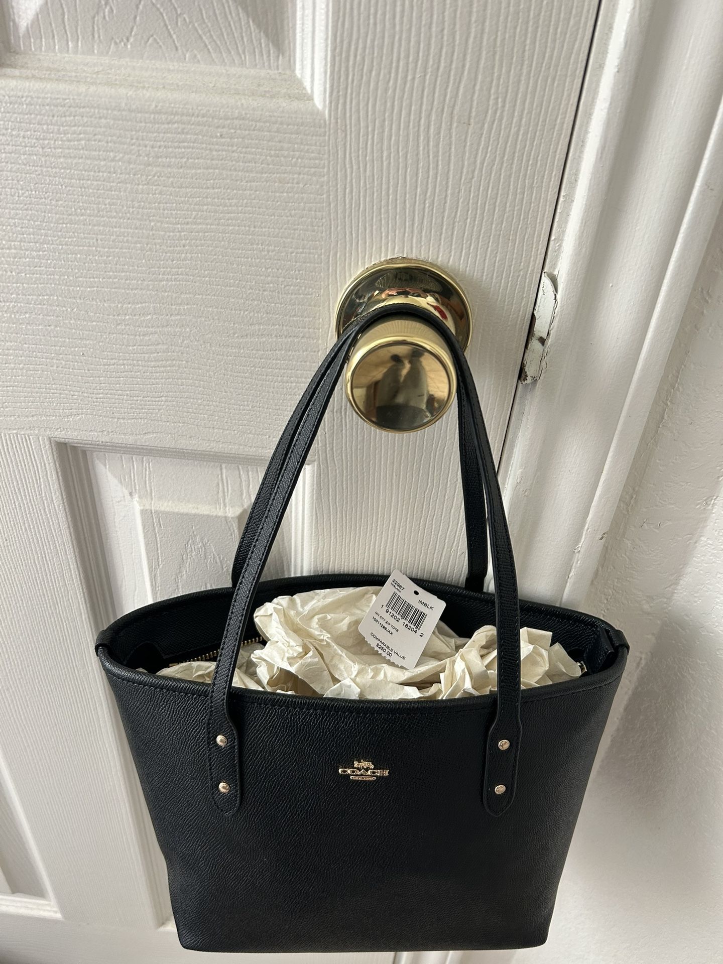 COACH Mini Leather City Zip Tote Purse - Black