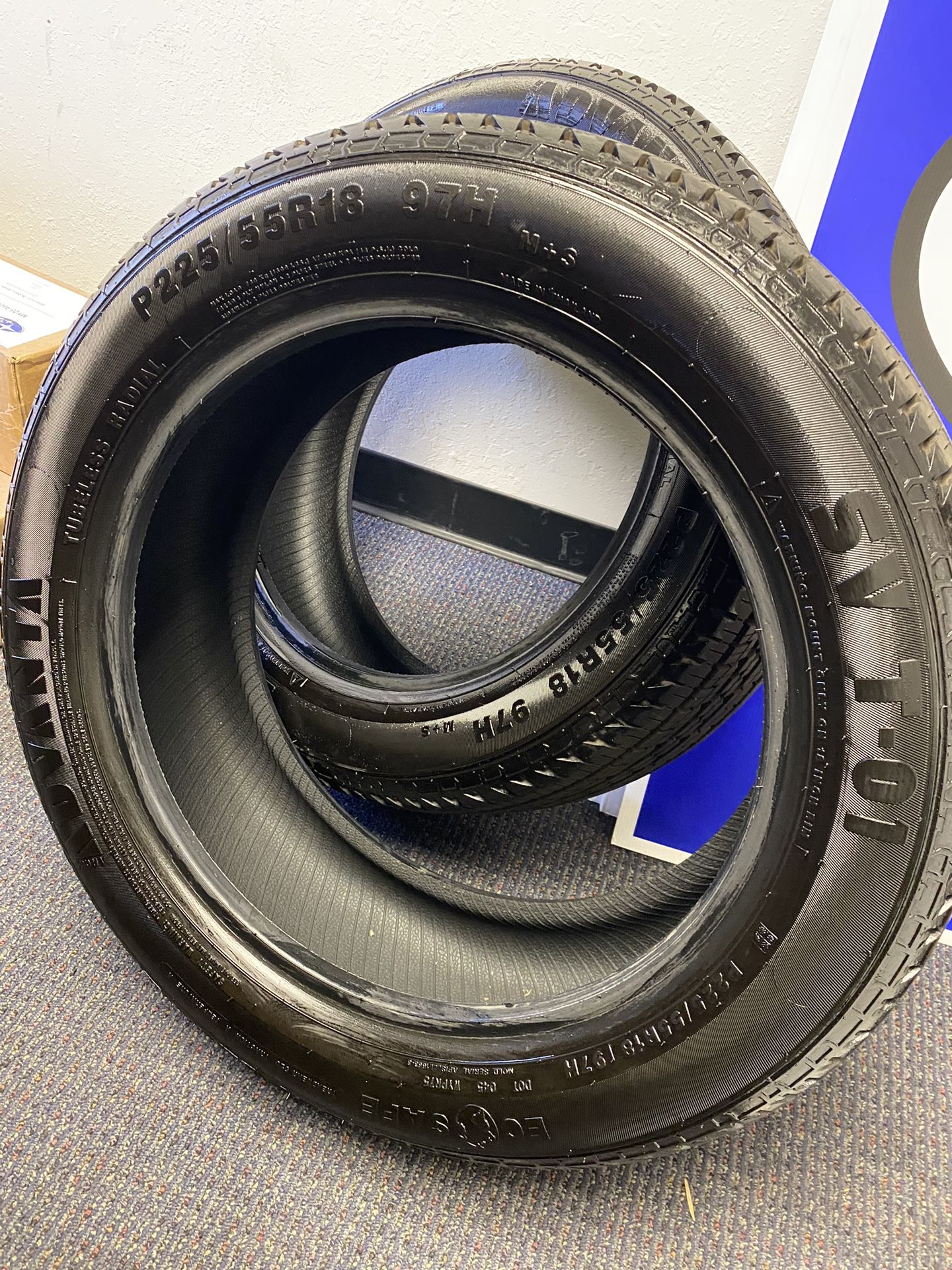 Selling two used in good condition 225/55R18 Advanta tires all season traction tires. Asking $120 for both