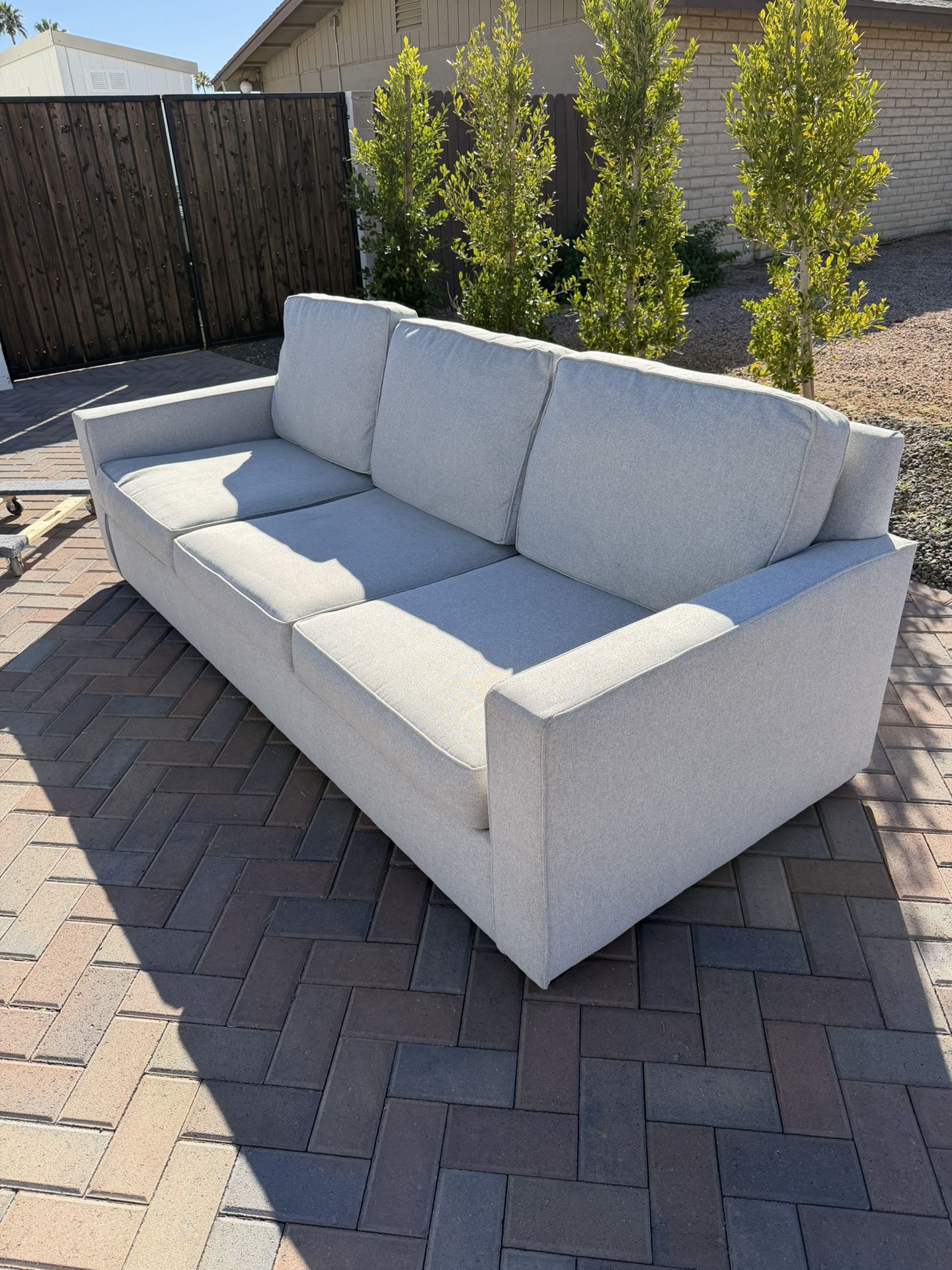 Pottery Barn sofa purchased in January 2023. Basket weave fabric n Dove (very light grey). In clean and good condition.