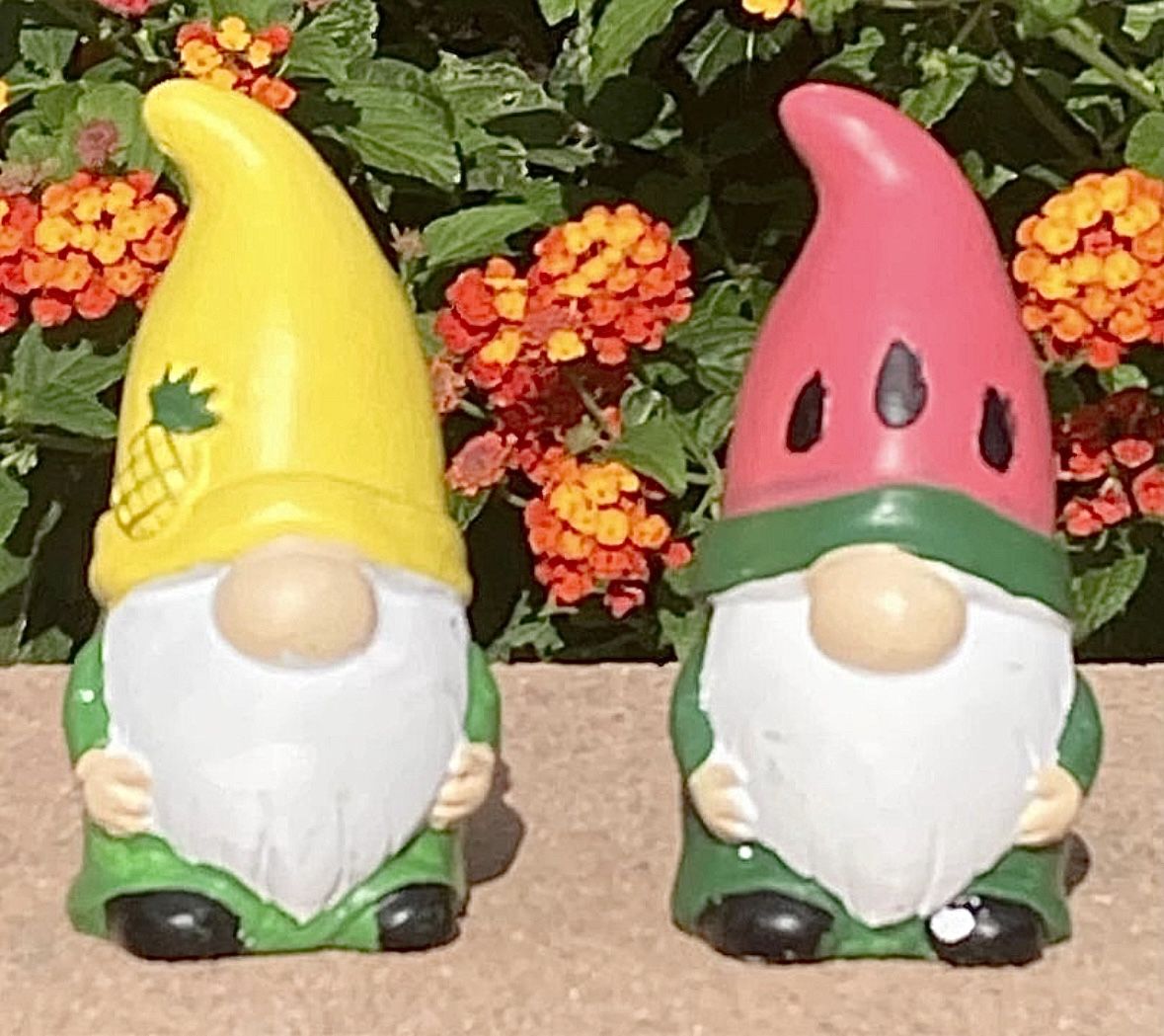 Summer Fruit Gnome Set of 2 Pineapple Watermelon Garden Table Decor Cement
