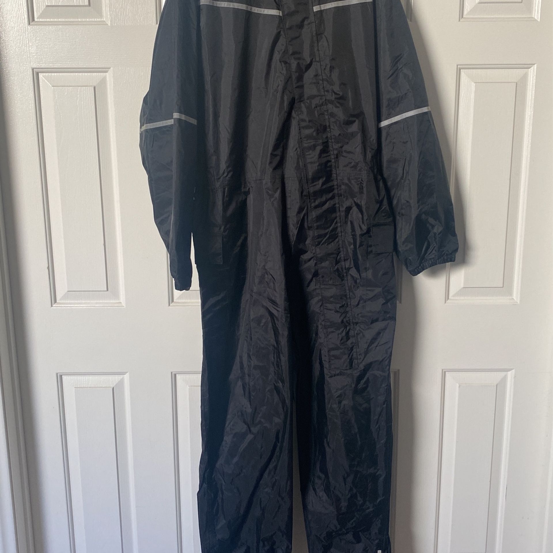Bilt rain suit size XXL. Zipper up front with Velcro flap. Elastic sleeve. Pockets on both sides. In great shape. Wore a hand full of times. I normally wear an XL jacket, this suit went over my leather jacket with no issues.