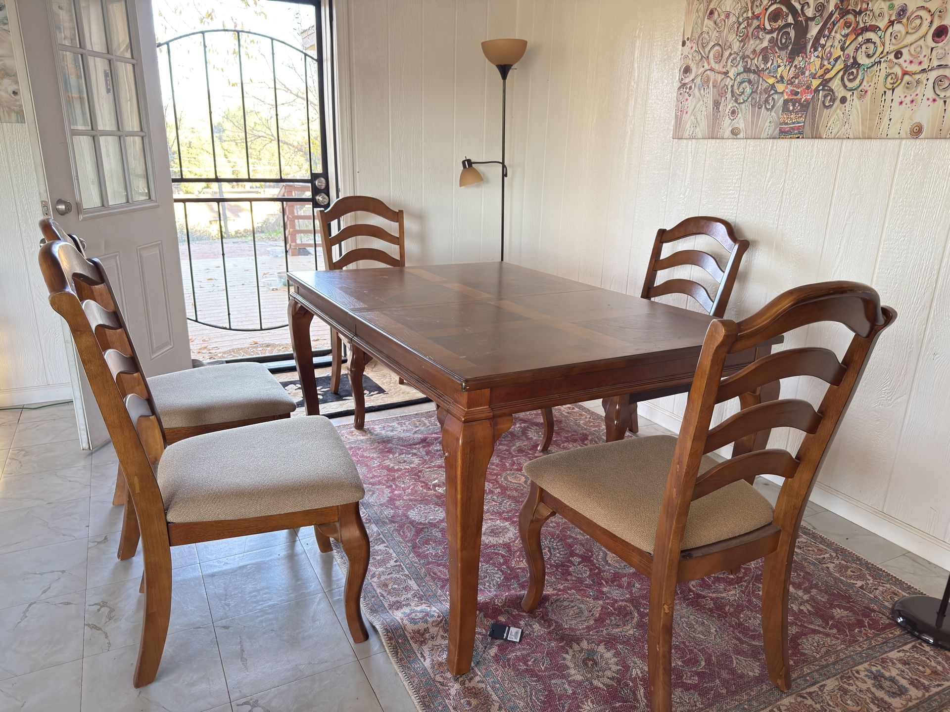 Dining table which extends with 5 chairs, like new mattress and bed frame, TV stand for a 50” no delivery must pick up yourself ☺️ please text me if interested (contact info removed)