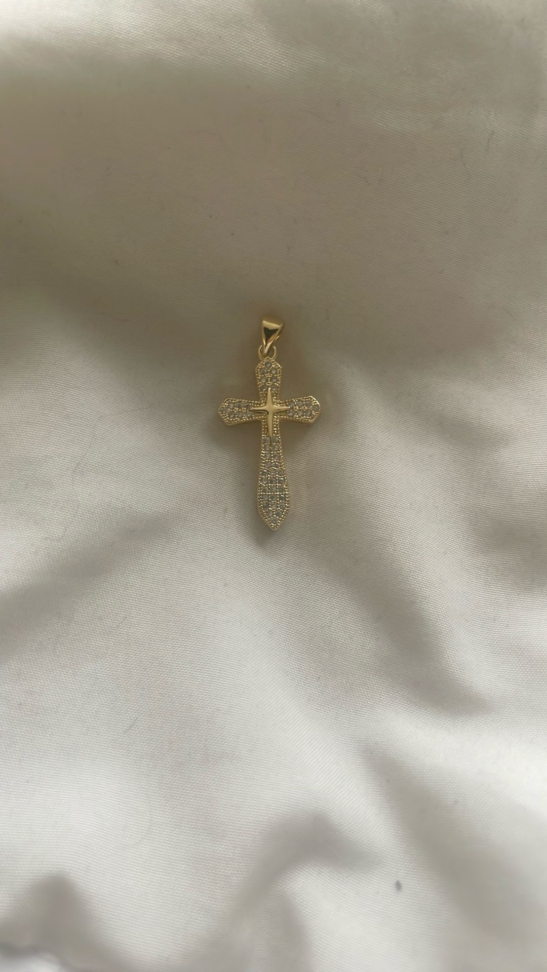 Gold toned cross pendant with rhinestones! cute versatile !