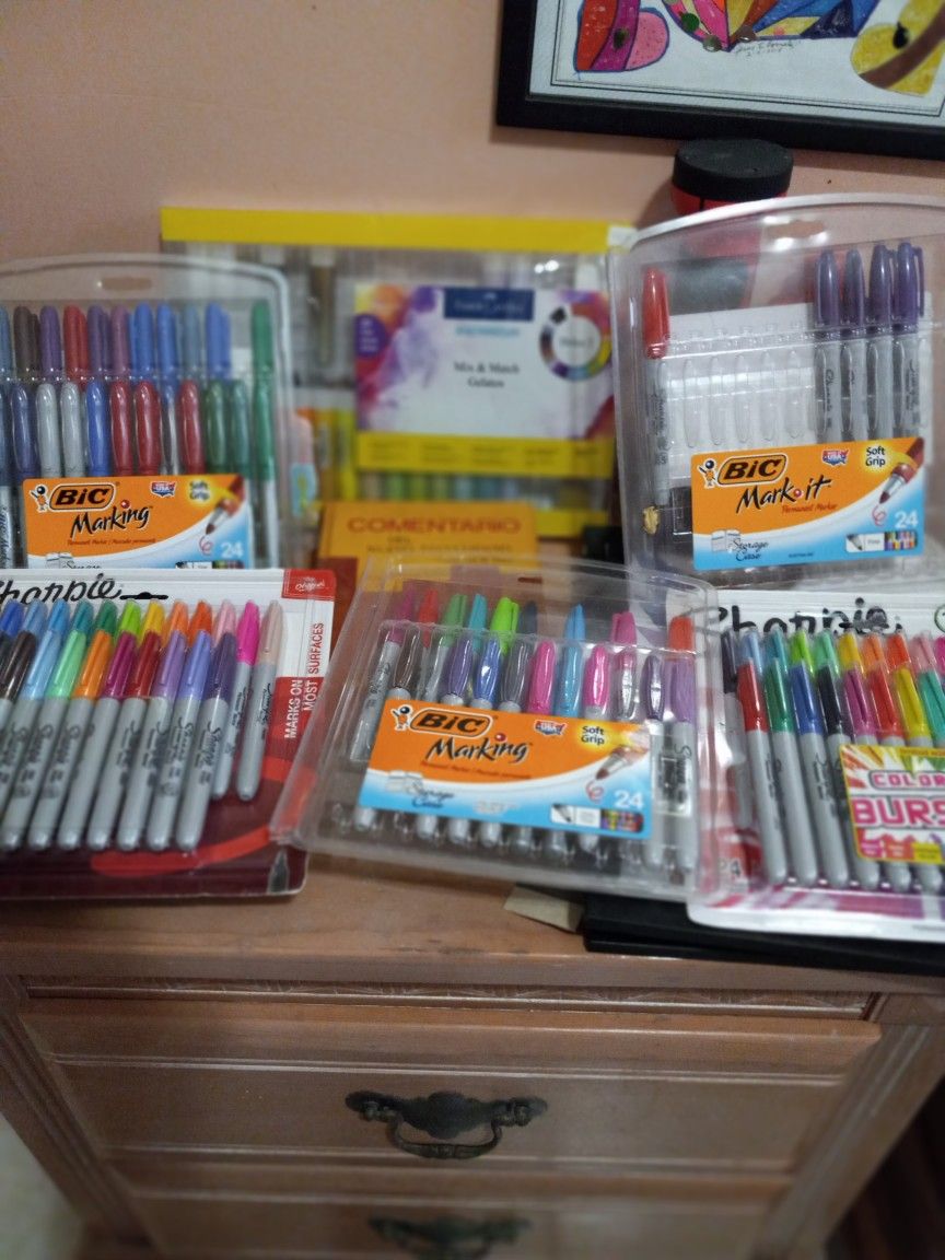 Arts suuplies .all kinds of markers new and used.blank canvases drawing books and paints