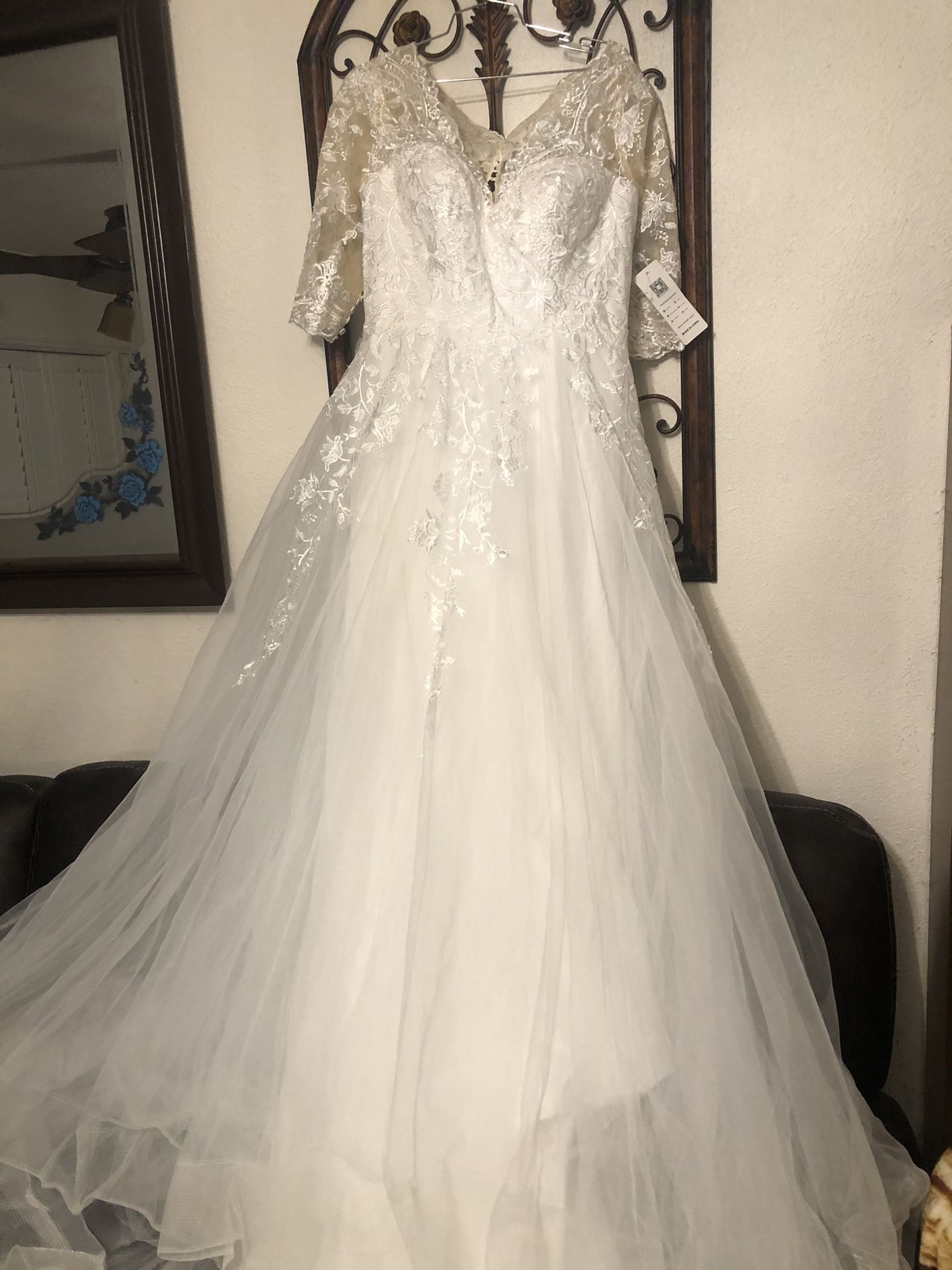 LAVERTIR WEDDING DRESS A-LINE PRINCESS NEW SIZE 12-16 ASKING 120 CASH ONLY AVAILABLE