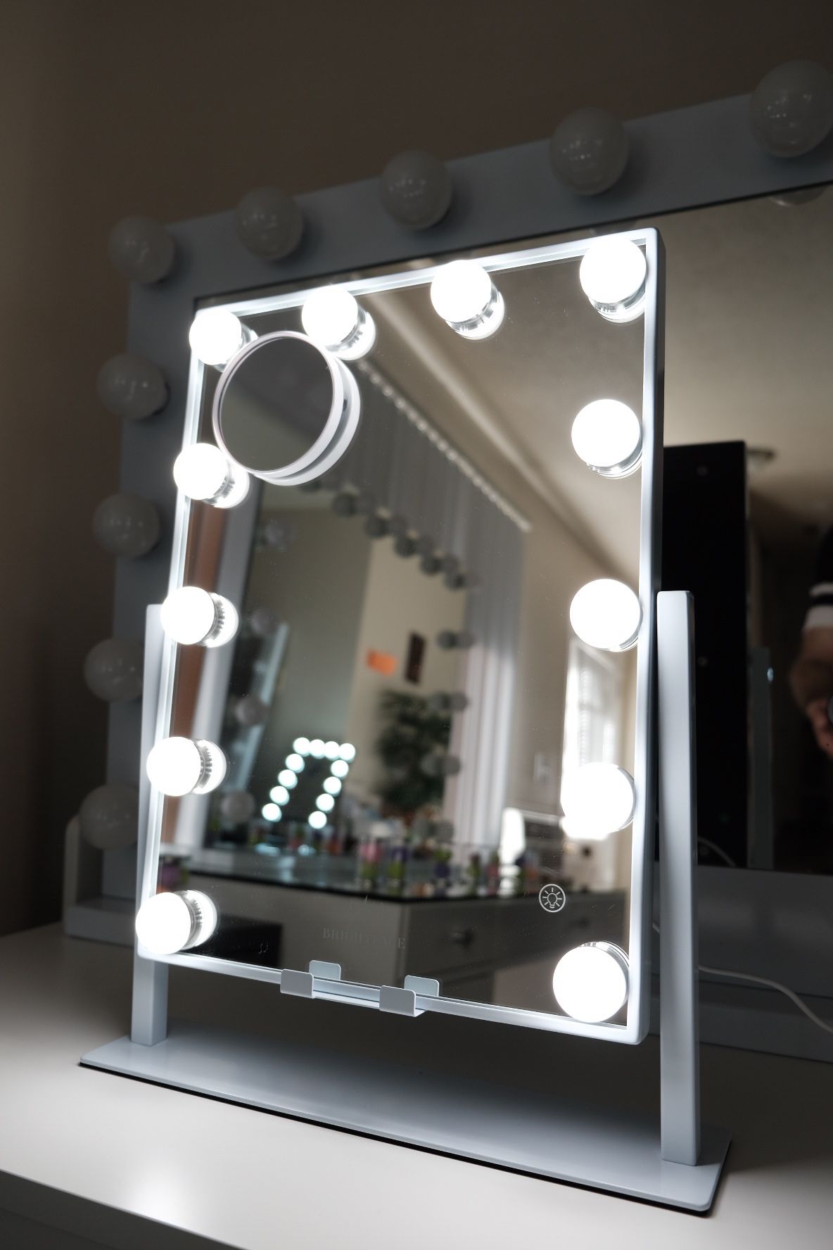Tabletop Makeup Mirror With Lights And Built In Wireless Charger .