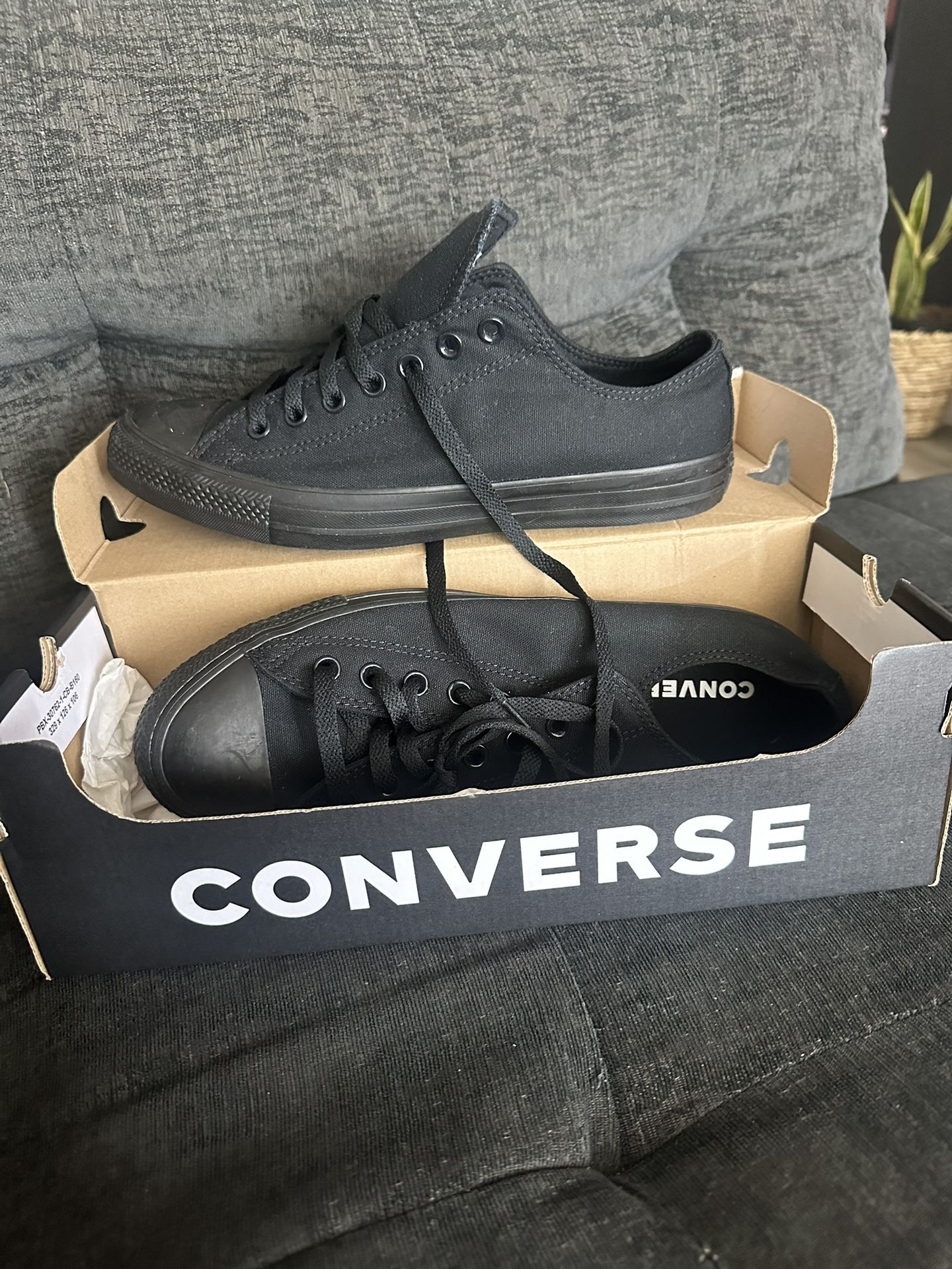 Low top black converse size 9.5 men and 11.5 women brand new