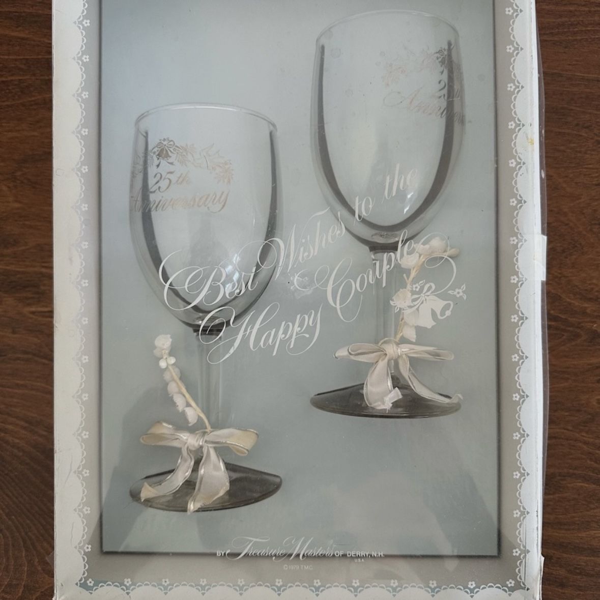 25th Anniversary Wine Glass Set Gift Box Silver Wedding Vintage