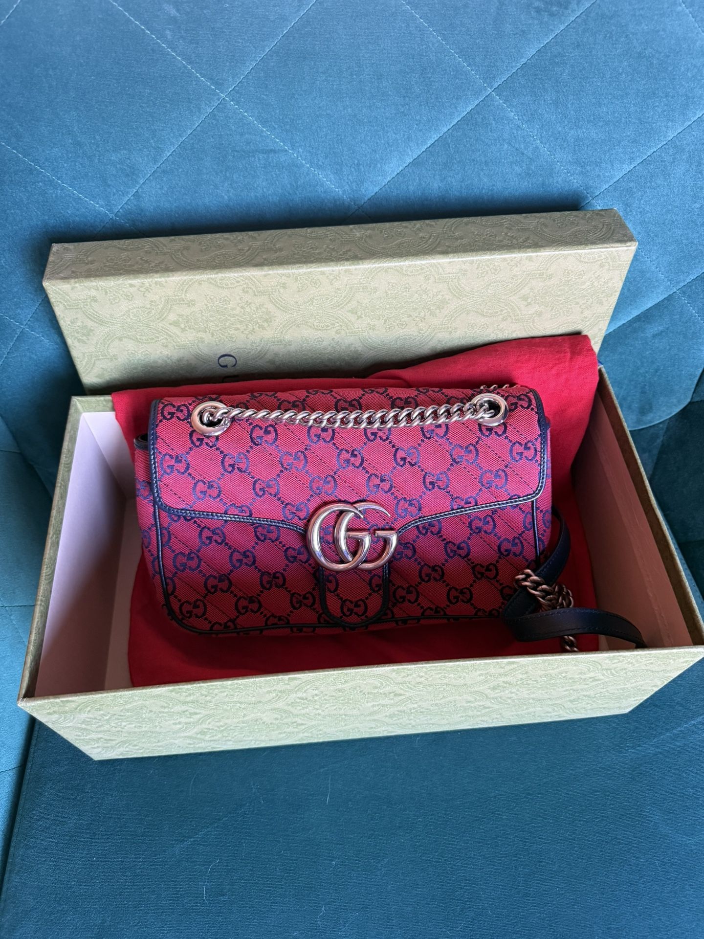 Authentic Gucci GG Marmont Quilted Canvas Flap Shoulder / Crossbody Bag Elevate your everyday style with this stunning Gucci GG Marmont flap bag, crafted from the iconic quilted GG canvas. This elegant and versatile piece can be worn as a shoulder bag or crossbody, making it perfect for both daily use and special occasions. 🖤 Details     •    Brand: Gucci     •    Model: GG Marmont Flap Bag     •    Material: Quilted GG Canvas     •    Hardware: Silver-tone     •    Closure: Flap with push-lock clasp     •    Measurements (approx.):     •    Length: 10 in     •    Height: 6.5 in     •    Width: 2.5 in     •    Strap Drop:     •    Single / Crossbody: approx. 22 in     •    Double / Shoulder: approx. 12 in ✨ Condition     •    Brand new, never used     •    Stored carefully — an unused personal item 📦 Included     •    Original dust bag     •    Original box ✅ Authenticity     •    100% guaranteed authentic A timeless and highly sought-after Gucci design that combines luxury, practicality, and iconic style.