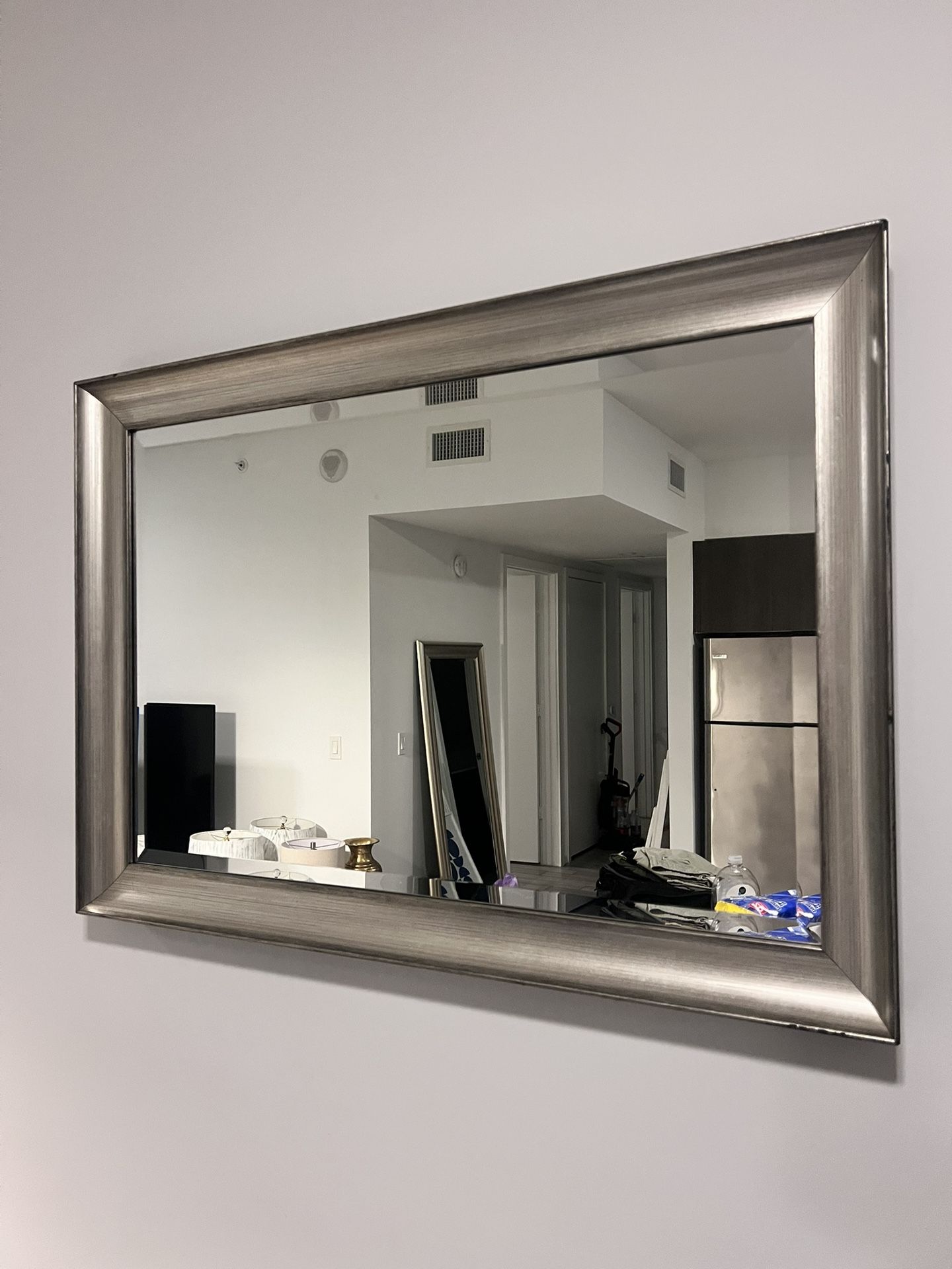 Oversized rectangular mirror with brushed silver frame. Great statement piece. No cracks. Ready to hang. π ~3β6β x 30β π Pickup Downtown