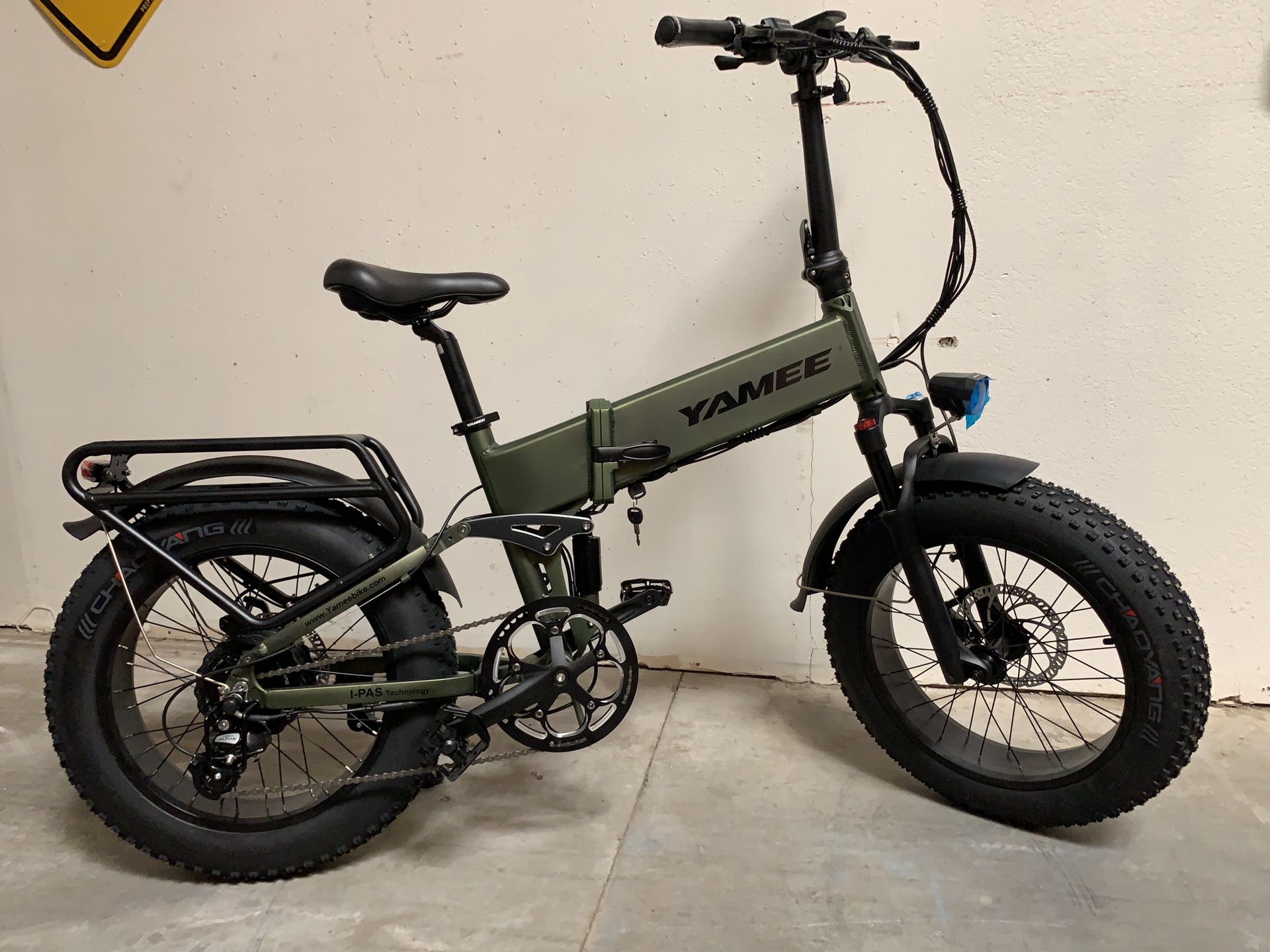 FAT BEAR 750S - 750 Watts Fat Tire Folding Aluminum Electric Bike in 3 Colors Regular price$1,999 now $1,799 SAMSUNG 48 Volts 14.5 Amps 18650-29E Cells Lithium Battery 750 Watts Motor 32 Mph Top Speed Up To 40 to 60 Miles Range on Level One Pedal Assist Front & Rear Air Suspensions TEKTRO Hydraulic Disc Brakes Kinetic Energy Recovery Cruise Control SHIMANO 8-Speed CHAOYANG 20" x 4" All Terrain Tires