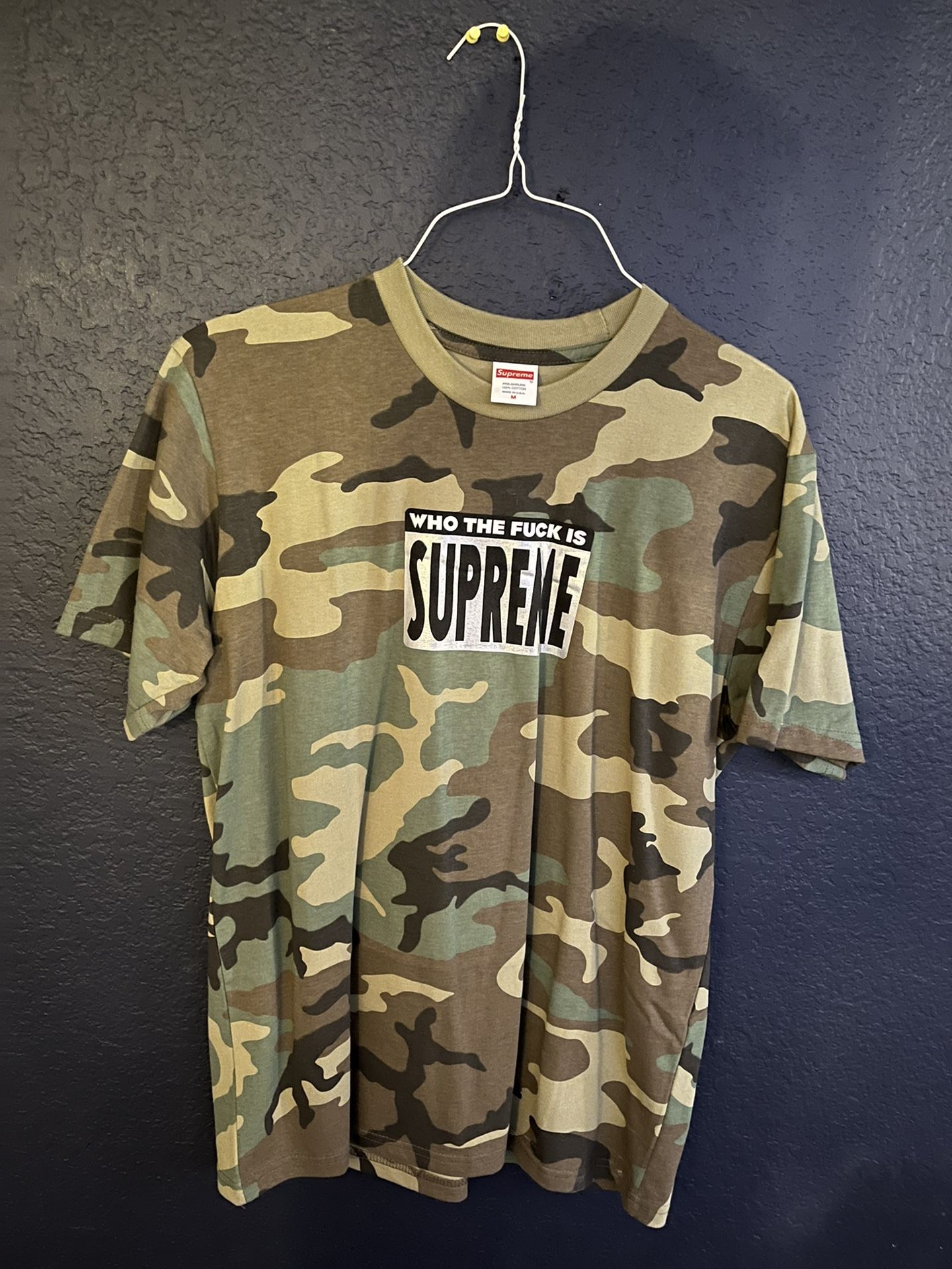 Supreme “Who The **** Is Supreme” Camo Tee. Size Adult Medium