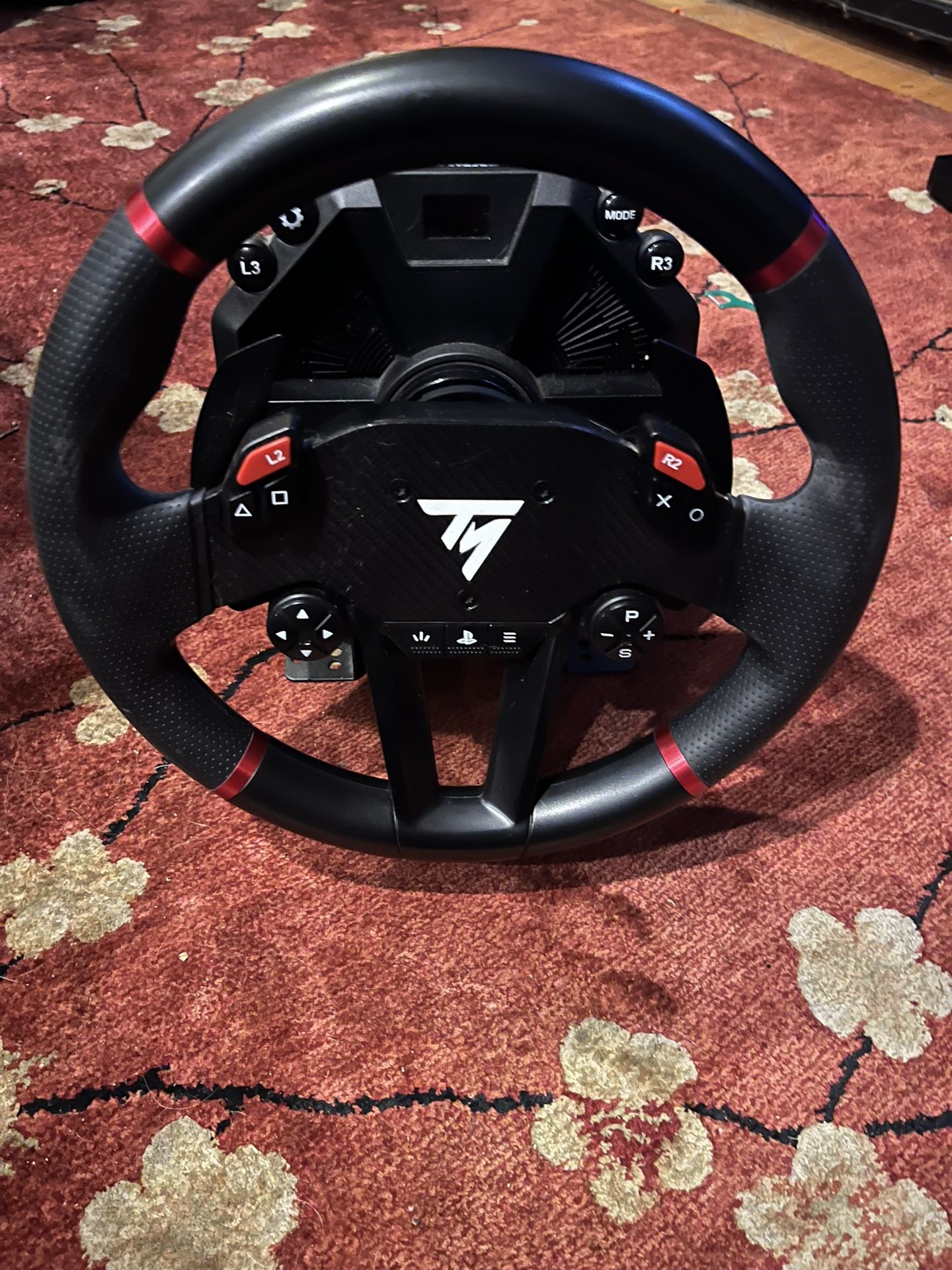Awesome Thrustmaster racing wheel and T-LCM pedals. Great for PS4-5 and PC racing games. Wheel has force feedback, all buttons working. Pedals are metal, feel super responsive. Comes with clamps for easy setup. Everything clean, ready to go. (Have an extra power bank and upgraded spring for pedals)