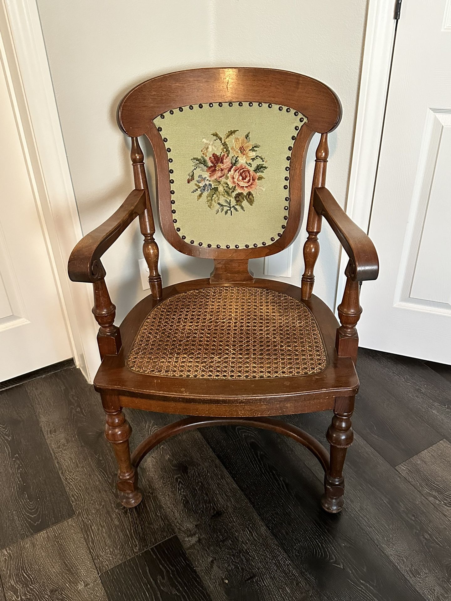 Beautiful vintage chair With lots of quality, beautiful, vintage features: Heavy and durable- made from Walnut Wood Caned seat Needlepoint Back Located in Henderson near St Rose Parkway and Maryland Parkway