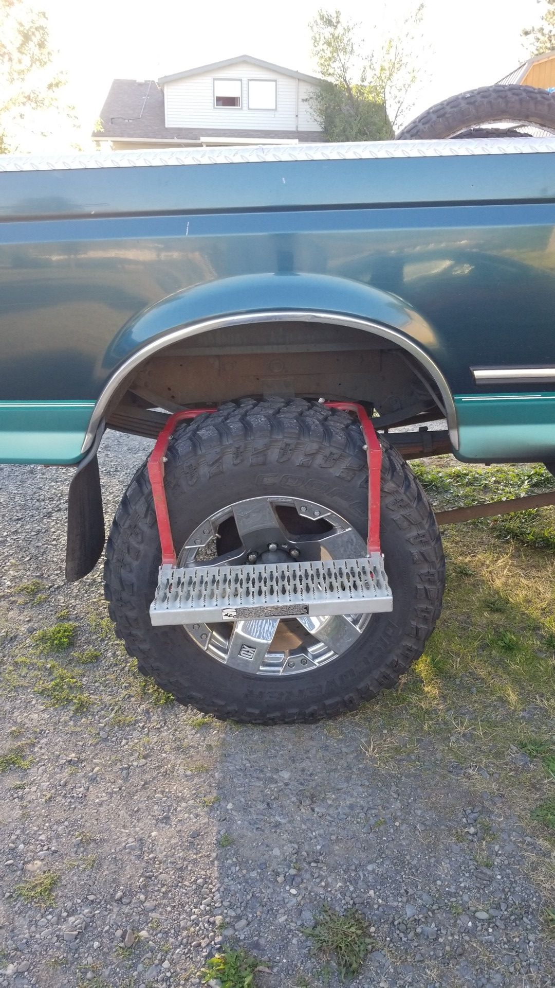 It's adjustable to fit on different tire sizes. The picture is it on a 37x13.5 I think that's about as wide as it goes. Make offer/trade