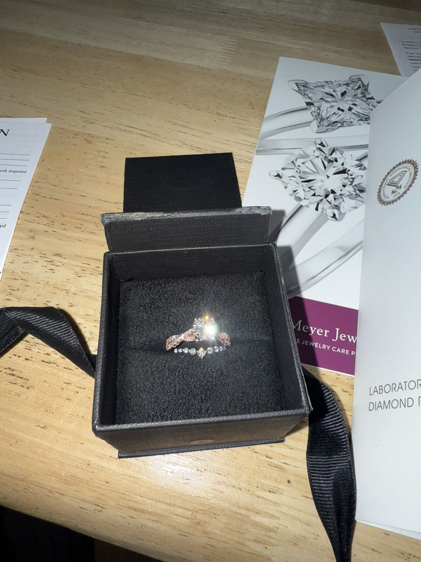 Beautiful high-quality lab-grown diamond engagement ring set. Center stone is 1.72 carat round brilliant, G color, VS2 clarity, Excellent cut/polish/symmetry, IGI certified (certificate included). Features: • Lab-grown round brilliant diamond (1.72 ct) • G color / VS2 clarity • Excellent cut, polish, and symmetry • No fluorescence • IGI certification (paperwork included) • Rose gold pavé engagement ring • Matching wedding band included • Clean, modern style, excellent condition This is a complete engagement + wedding band set. Purchased new, well cared for, never used, and ready to wear. Open to reasonable offers
