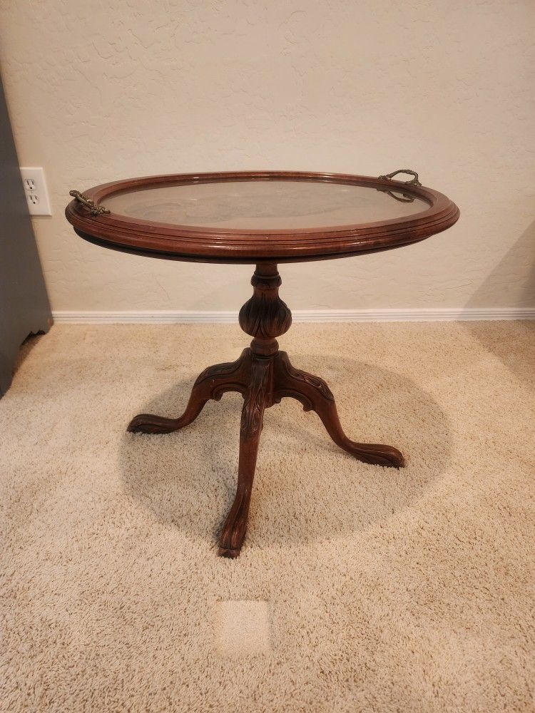 Antique American Walnut Carved Angel Butterfly Table tea tray cocktail serving table located in Anthem