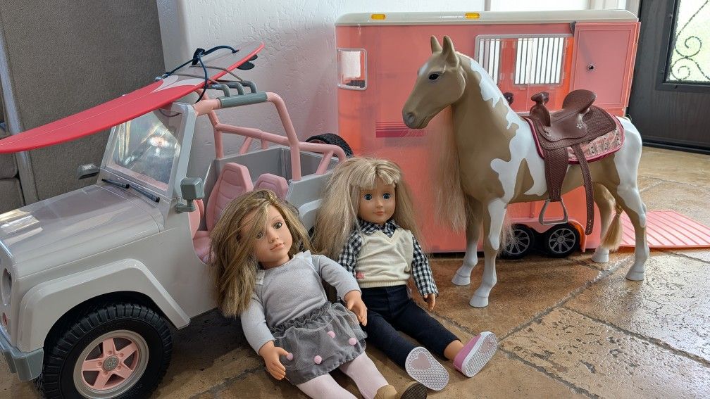Comes with Jeep, Trailer, Two Dolls, Horse, and Horse Accessories. Hardly used and In excellent shape. Our generation Barbie Target Kid Child Play House Doll Toy