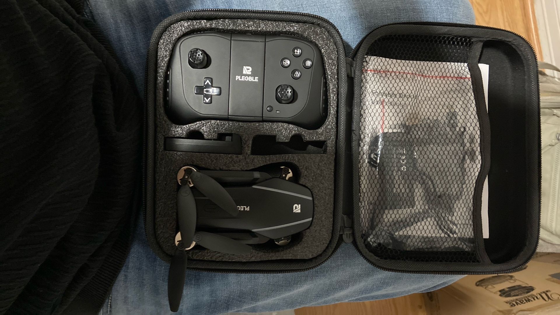 Plegble foldable drone with 4k camera recording. everything is inside the box: controller drone extra propellers 2 batteries for drone mini screwdriver charger case