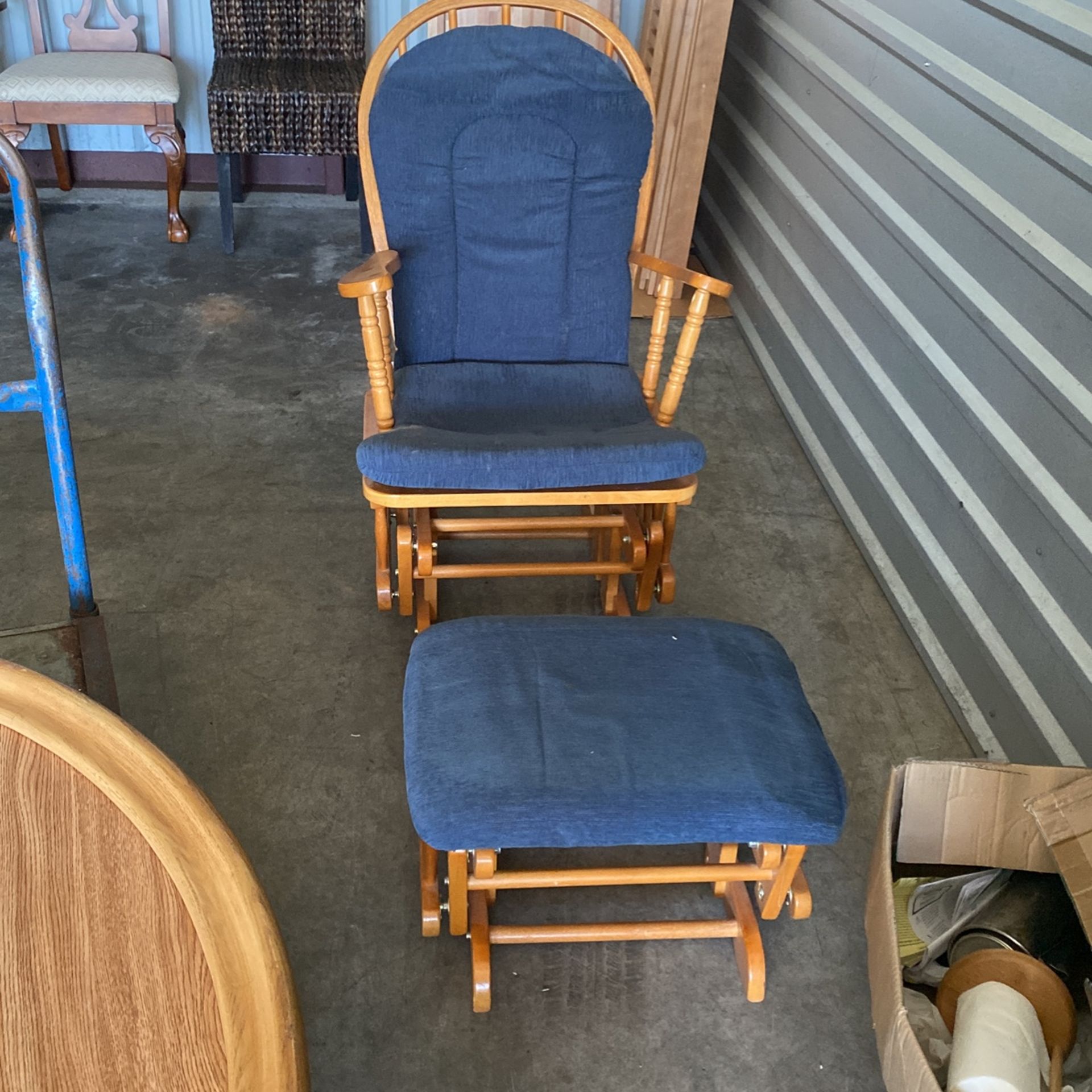 Blue rocking chair for family with baby or just put your feet on the stool and relax