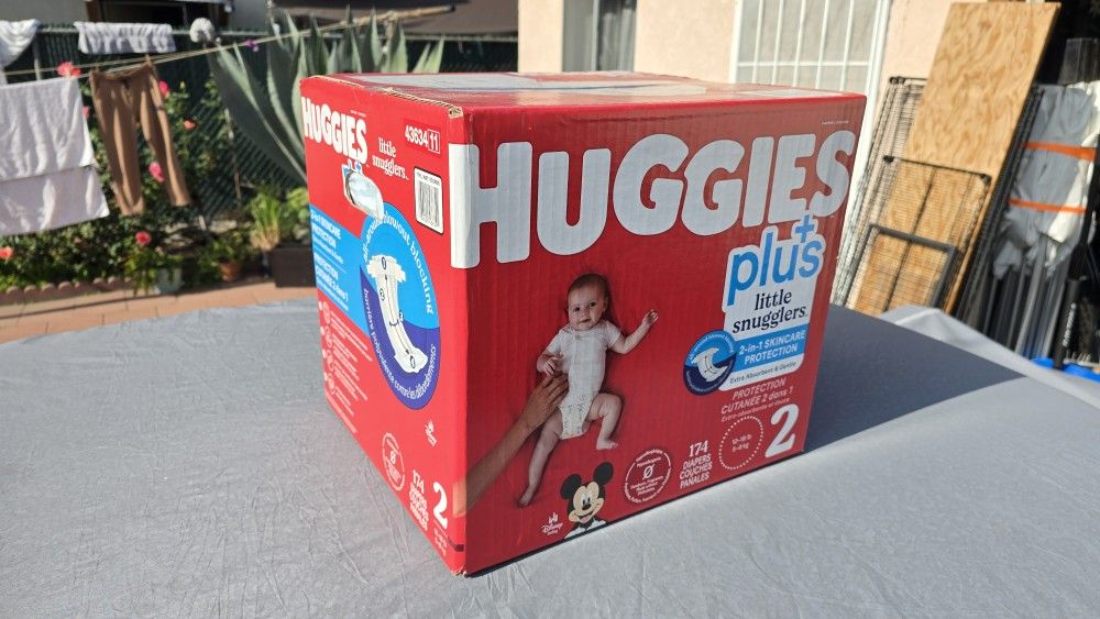 Huggies Plus Little Snugglers Disney Diapers. Size 2. 174 count. New and Sealed case. $50 picked up in Maywood