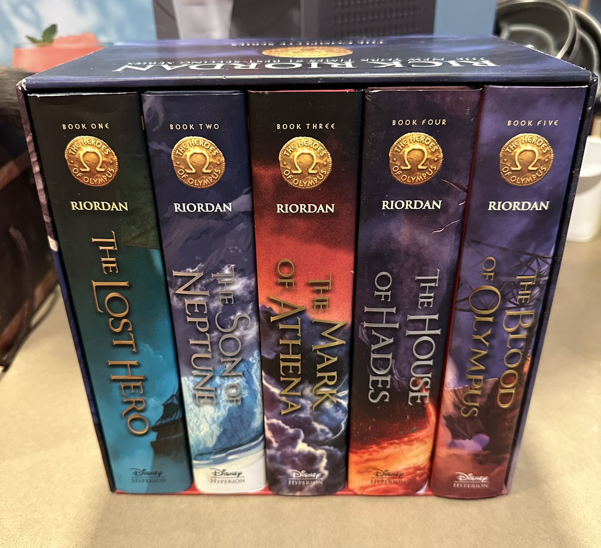 Excellent condition hard cover book set of The Hero’s of Olympus series books 1-5 by Rick Riordan