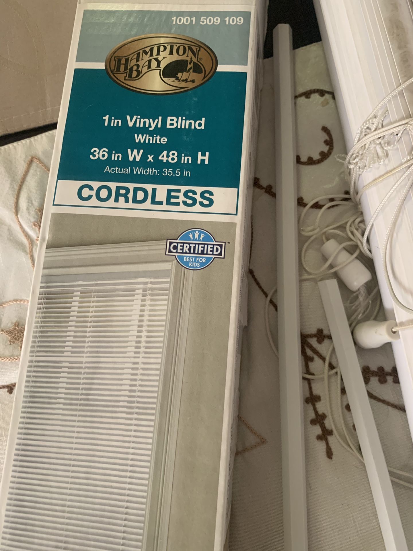 Hampton Bay (QTY 1 NEW IN BOX) Alabaster Cordless 1 in. Room Darkening Vinyl Blind-36 in. W x 48 in. L (Actual Size 35.5 in. W x 48 in. L) Tax free