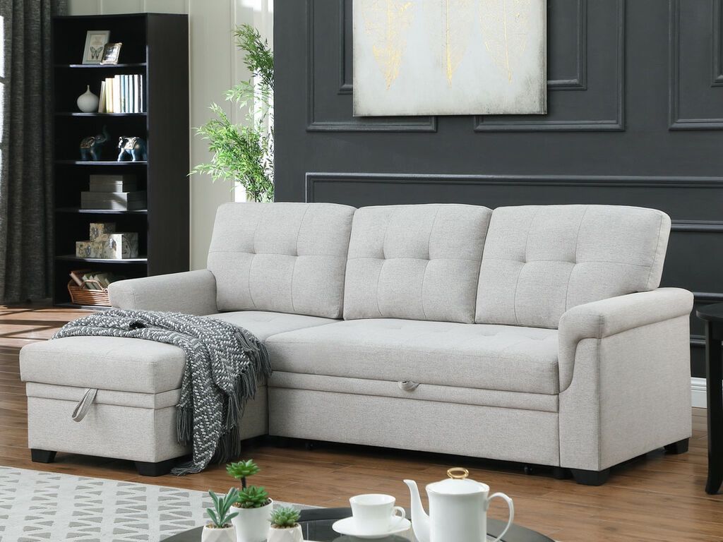 BRAND NEW LINEN REVERSIBLE SLEEPER SECTIONAL SOFA REVERSIBLE STORAGE CHAISE 46"x20"x7.8"H PULL OUT SLEEPER : 42"x71" FAST DELIVERY AVAILABLE PAYMENT CASH / ZELLE ON DELIVERY