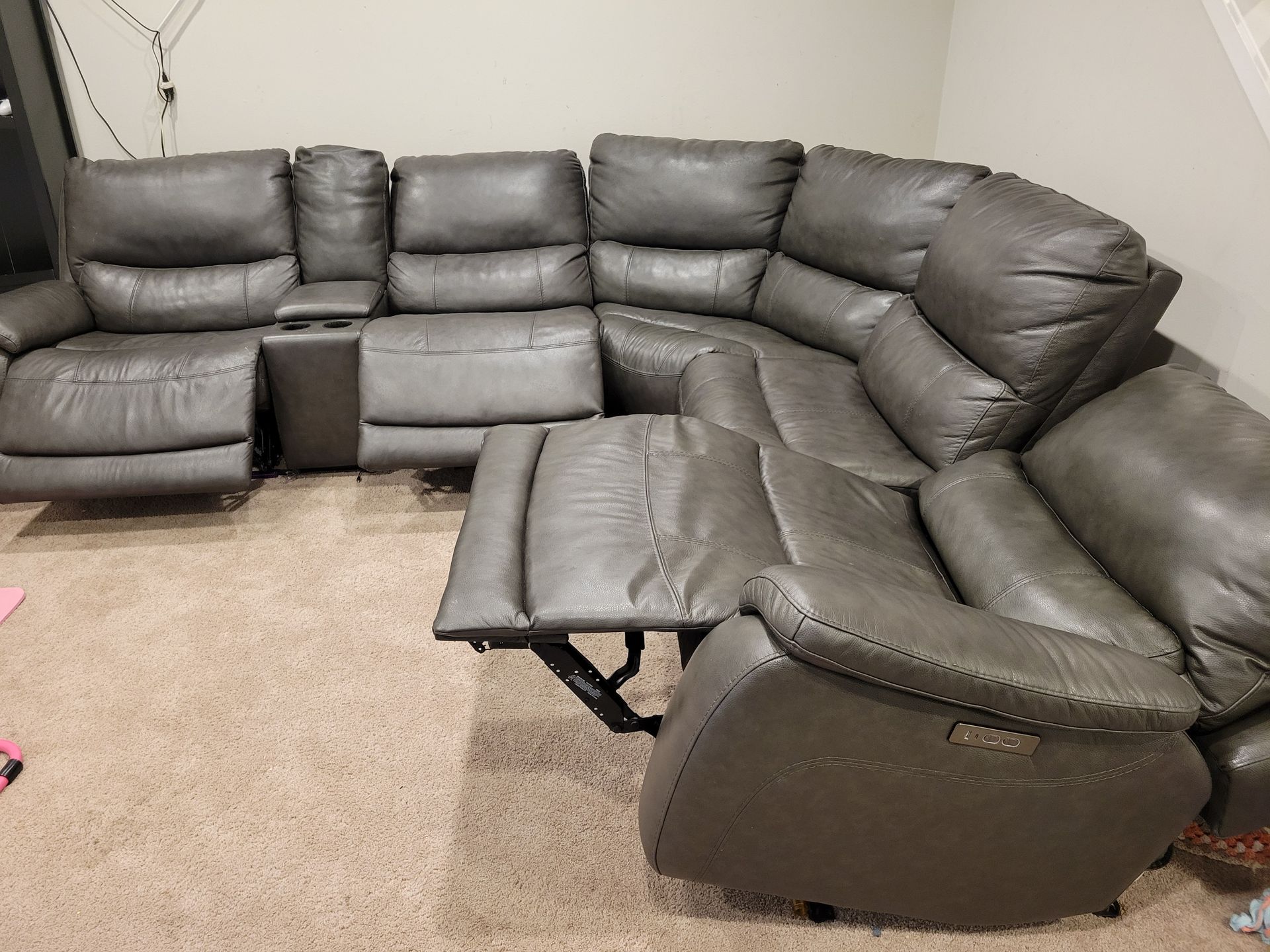 Purchased from Costco about a year ago for media room, downsizing and need to get rid of. Electric reclining sofa and headrests, five total seats. USB-A and USB-C ports on either end and in storage cubby. Pickup only