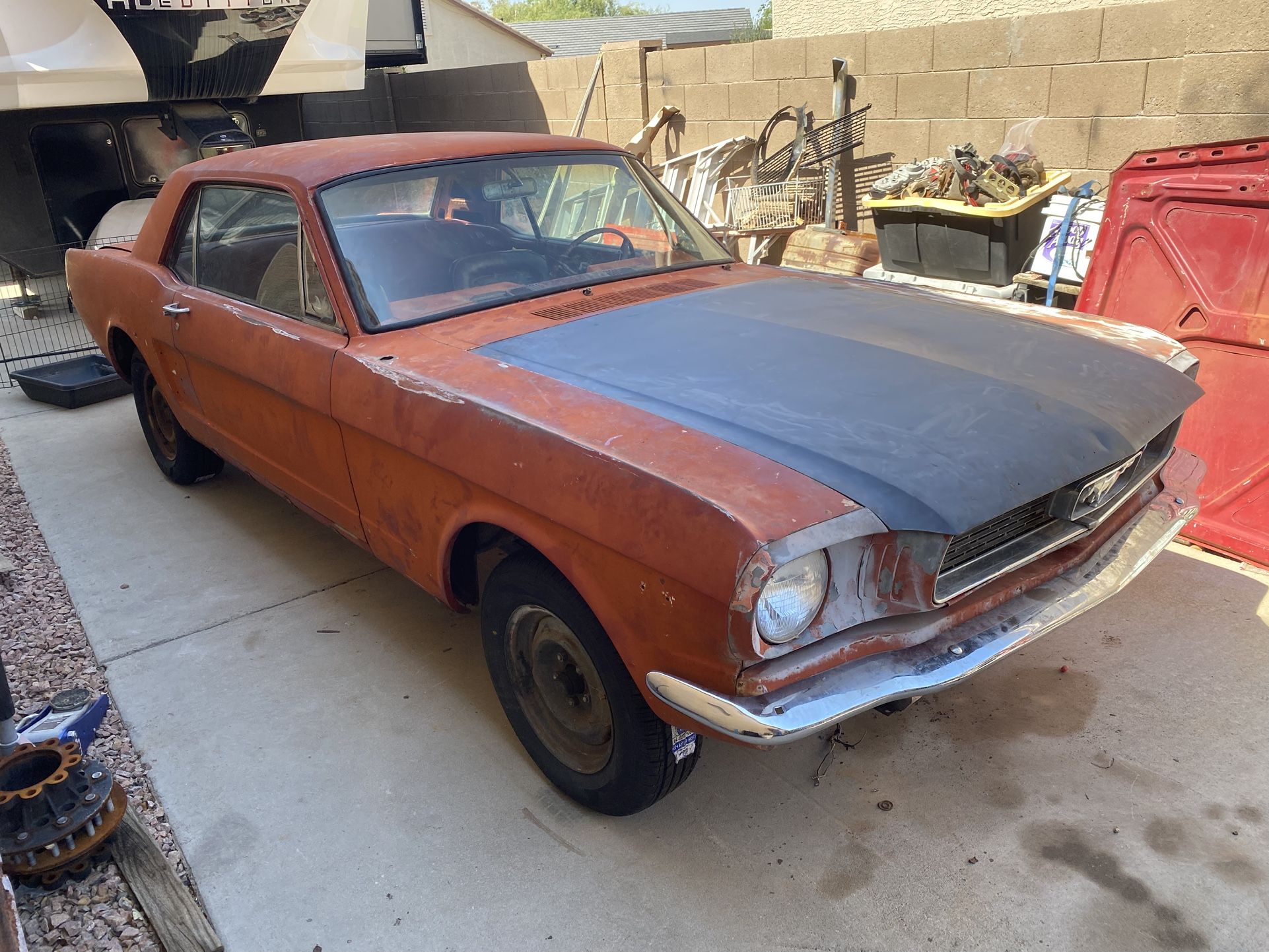 SALE PENDING ! 66 Mustang coupe project, factory C code 289 2v car with automatic and power steering. Engine and trans are in vehicle and engine cranks over on starter, but I haven’t had it running at this time. No exhaust on it, but I do have a single exhaust Y pipe. San Jose built, LA dso. Clean floors, glass intact, new tires, starter, master cylinder, etc. Needs to be trailered or towed. Clean clear Az title in my name. Serious buyers only, no trades . IF AD IS UP CAR IS AVAILABLE, will ignore is this available responses