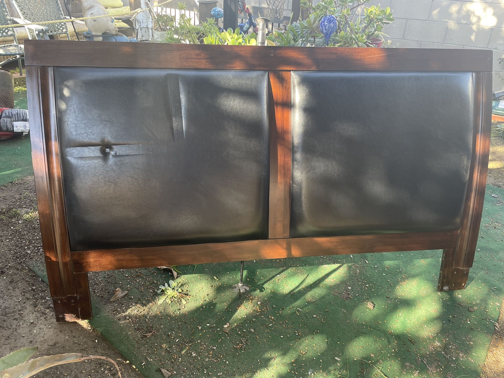 It’s real wood, leather on the headboard, and it’s heavy…good condition.