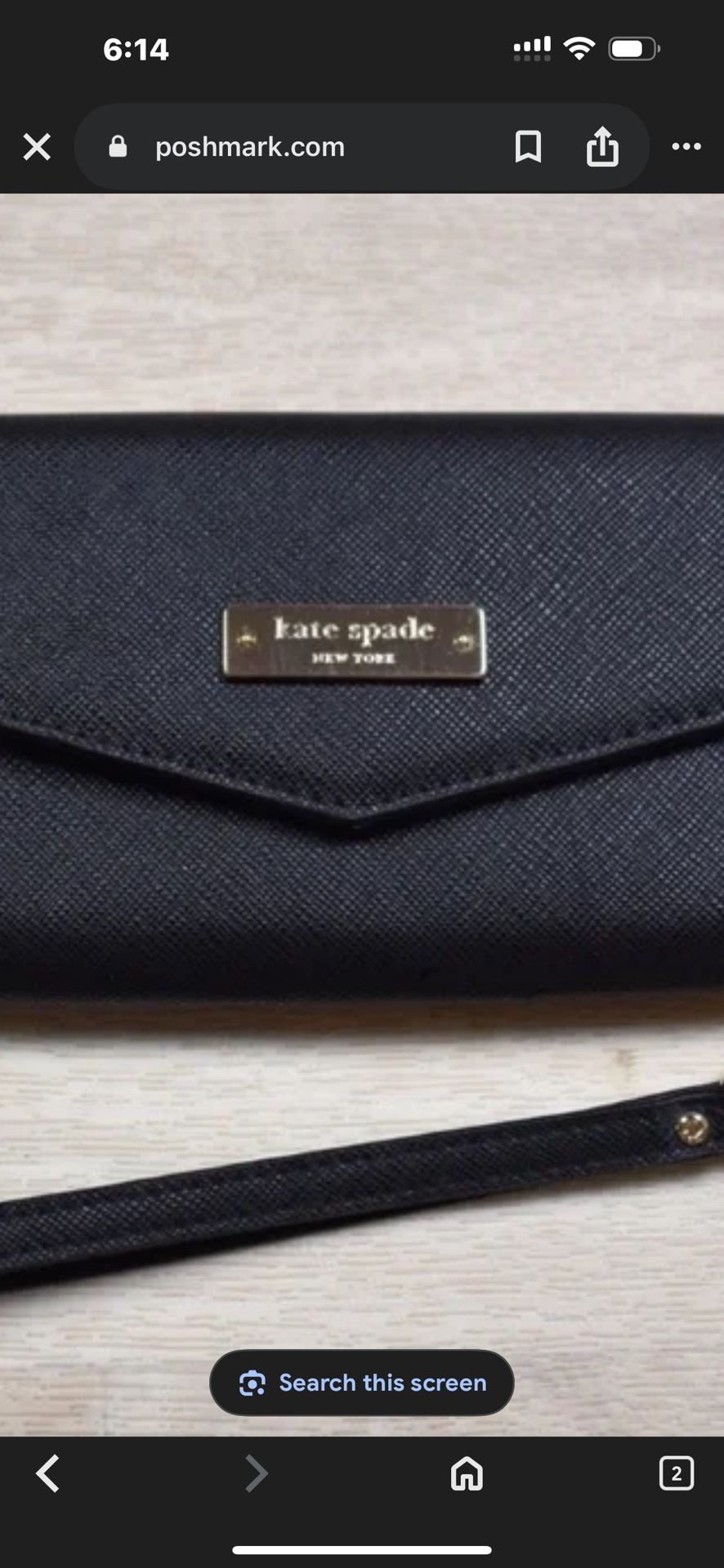 Kate Spade wallet/wristlet 6.5" x 3". Removable wristlet strap. It is about 6.75" by 4.25". Gold tone hardware. Kate Spade logo. Excellent condition. Leather looks great.