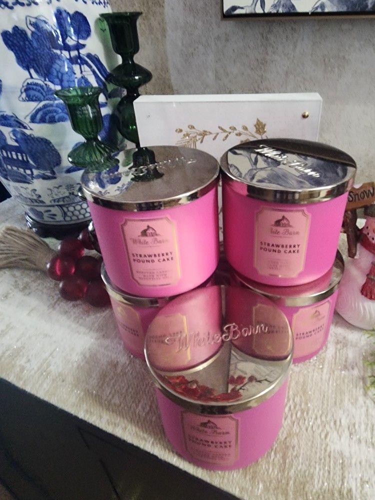 24.5 ozs Bath and Bodyworks Large Scented Candles Strawberry Pound Cake scent 5 count $10.00 each Pick up available.