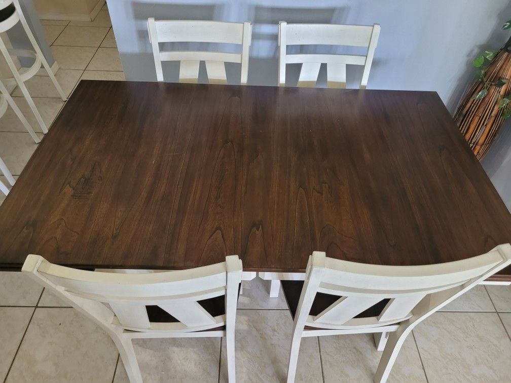 Like New, Beautiful Heavy Duty Pull Out Extendable Wooden Dining Table With 4 Chairs 40 inches wide 66 inches long without extension 94 inches long, extended Paid $2700 $1200 Must pickup in NE Cape Coral (Sorry, can not deliver)