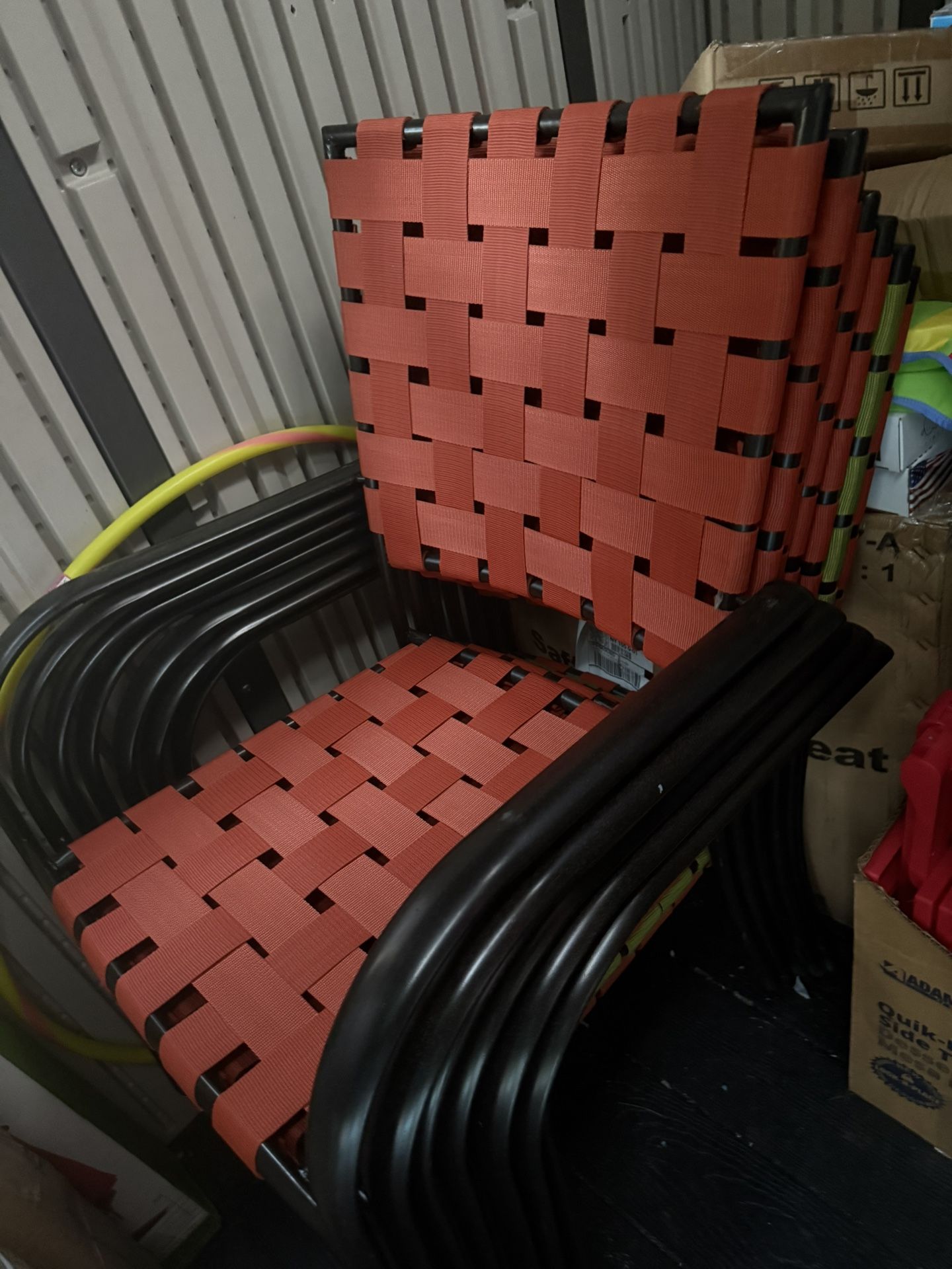 Set of 8 Stacking Chairs 6 Orange and 2 lime green