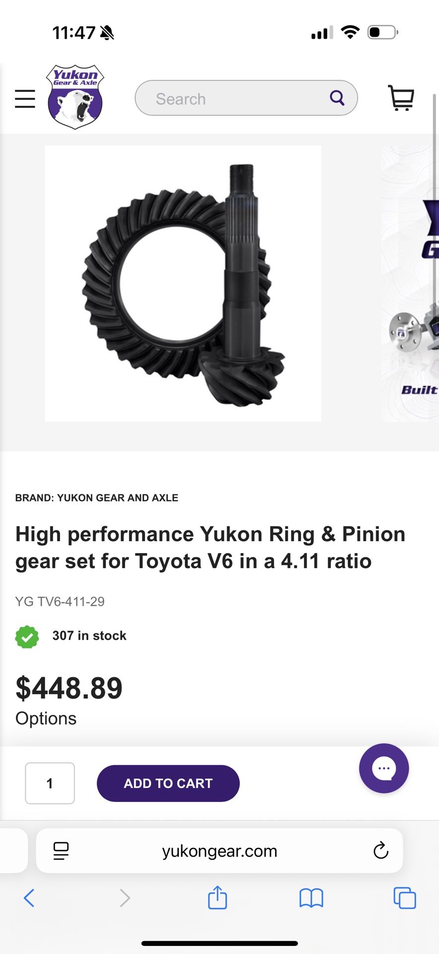 High performance Yukon Ring & Pinion gear set for Toyota V6 in a 4.11 ratio
