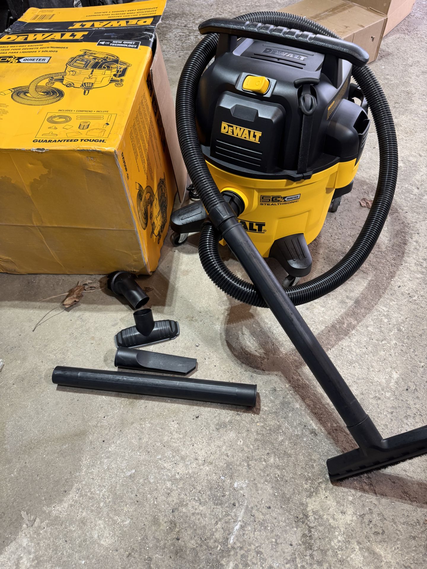 Warranty replacement motor unit is brand new tank, house and other accessories very light or no use . See pictures. DEWALT Stealthsonic Quiet 9-Gallon 5 HP Corded Wet/Dry Shop Vacuum with Accessories Included Pick Up is in Woodridge cash only no trade no delivery thank you.