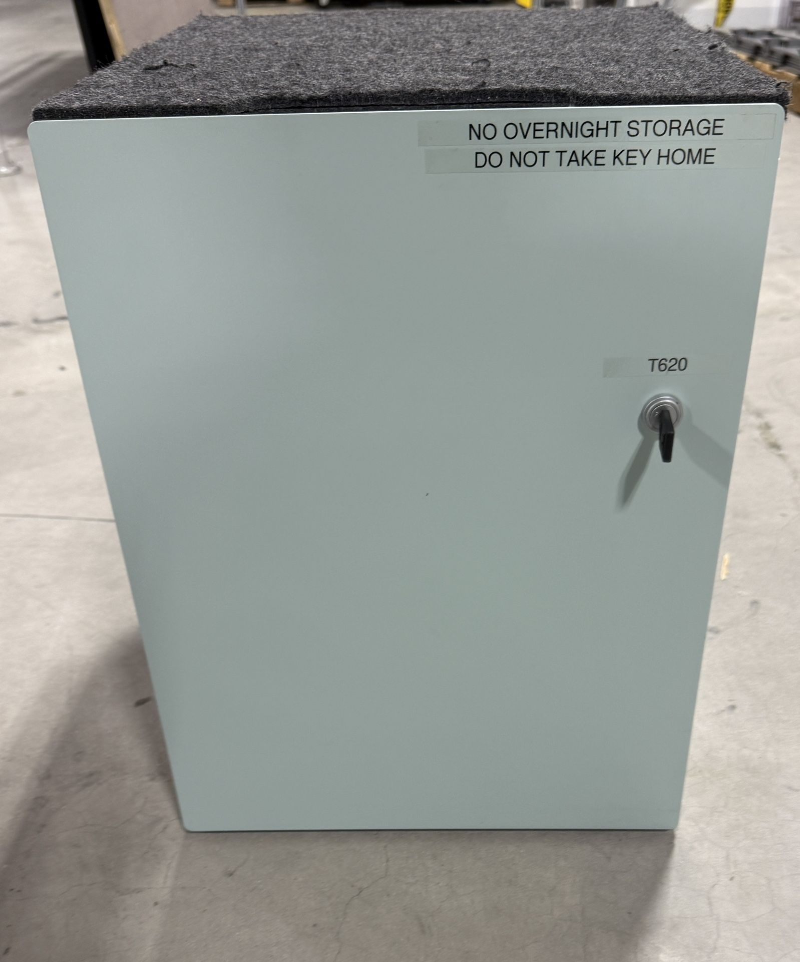 This rolling cabinet locks and comes with a key