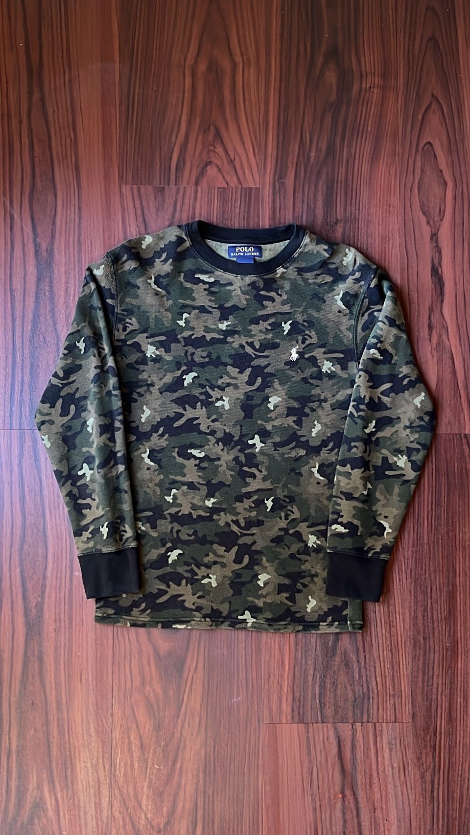 Polo Ralph Lauren Shirt Mens Small Camo Thermal Waffle Knit Crew Neck Layering