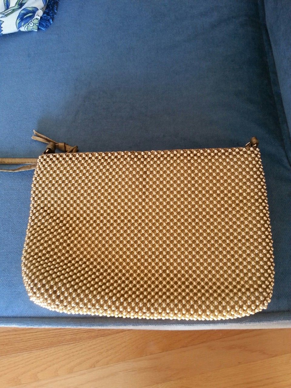 Gold metal ball purse ..9x 6 size with one inside zip pouch...new ..no tags