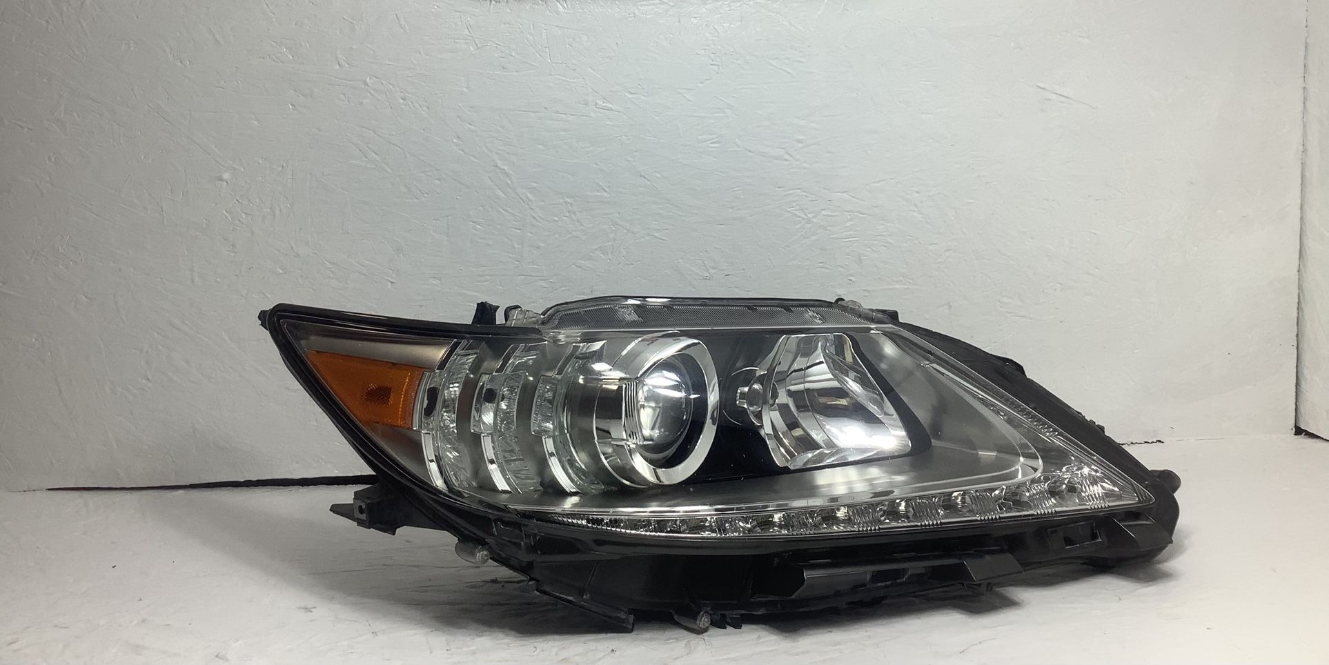 #9502 Lexus ES350 right headlight has rock chip, scratches, two broken tabs and repaired, please see photos for more details, We deliver in local Houston areas, Se Habla Espanol.